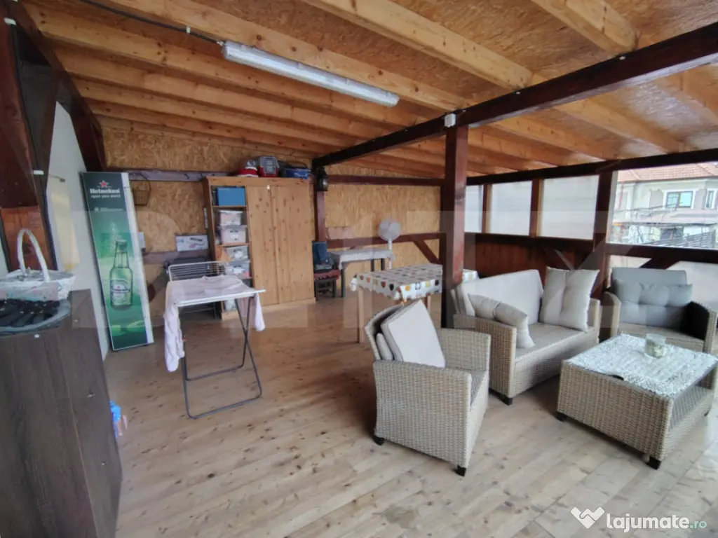 BLITZ oferă spre vânzare casă familială, situată în Baciu, o proprietate compactă, solidă, construită de o familie de oameni gospodari. Casa prezintă un regim de înălțime P+E+Pod, cu garaj, curte pavată spațioasă, grădină, filigorie cu grătar și apă curentă, magazie. Proprietatea dispune de o suprafață utilă de 140 mp, amplasată pe un teren de 540 mp. Compartimentare funcțională ce împarte casa în 2 unități de locuire separate: Parter: hol acces, cameră dormitor 25 mp, bucătărie închisă 14 mp, cămară cu geam, baie, garaj închis spațios cu deschidere telecomandată, beci generos (intrarea separată, este unitate de sine statatoare locuibilă); Etaj: hol acces, 2 camere, bucătărie, baie, terasă mare acoperită ce se poate închide, balcon. Casa este finisată, mobilată și utilată, cu toate utilitățile, o centrală pe gaz recent înlocuită și boiler suplimentar. Este o proprietate excelentă pentru o familie sau familie extinsă. Pentru o experiență relevantă și mai multe detalii vă așteptăm să ne contactați, și ulterior să programăm o vizionare. Nu veți regreta. Cod ofertă / ID BLITZ: P163592 Id intern: P163592 Număr niveluri imobil: 1 Număr Băi: 2 Curent Apă Canalizare Gaz