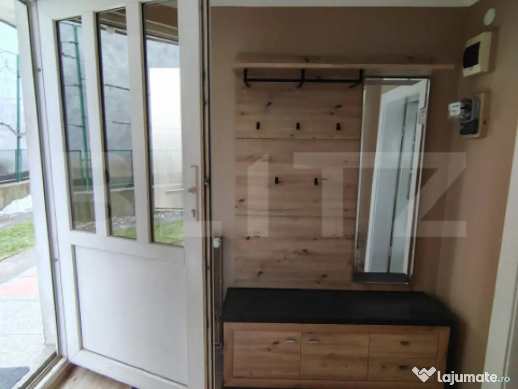 Parter: hol acces, cameră dormitor 25 mp, bucătărie închisă 14 mp, cămară cu geam, baie, garaj închis spațios cu deschidere telecomandată, beci generos (intrarea separată, este unitate de sine statatoare locuibilă);