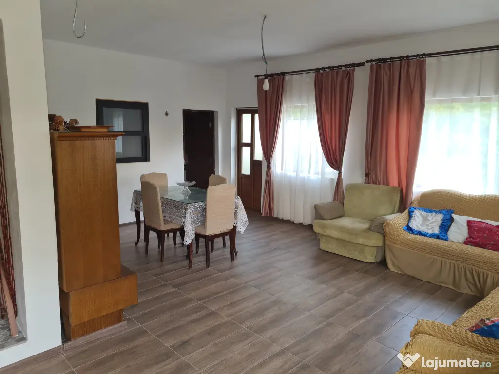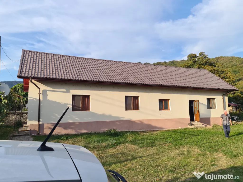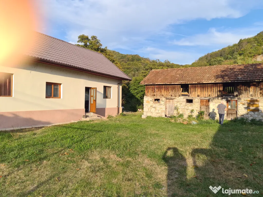 Casa complet renovata, izolata termic complet. 4 camere semidecomandate cu suprafata de 127 mp. Sufragerie generoasa aprox 45mp. Dependinte, magazii si beci din piatra. Acoperis tigla metalica Lindab, garantie 40 ani. Zona superba. Teren 4500 mp, cadastrat. Electricitate, apa, canalizare in executie in comuna.Pret 90 000 Euro negociabil