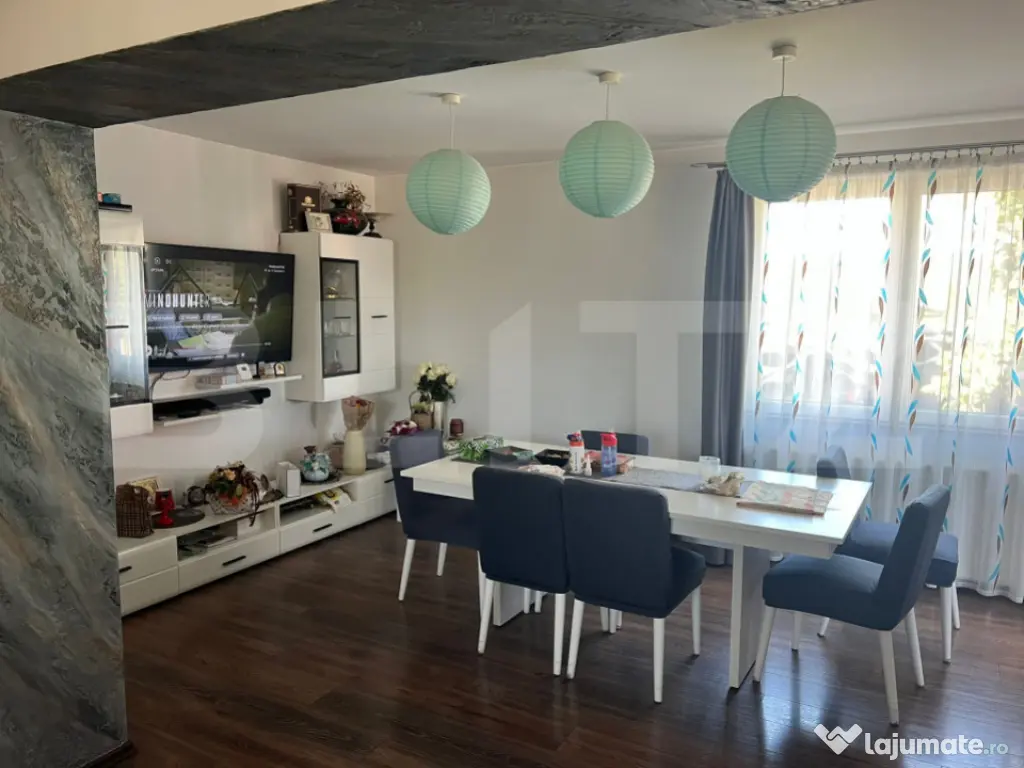 Blitz oferă spre vânzare o casă spațioasă situată în Ungheni, cu o suprafață utilă de 300 metri pătrați, amplasată pe un teren generos de 830 metri pătrați. Proprietatea este ideală pentru o familie numeroasă sau pentru cei care își doresc confort, spațiu și intimitate într-o zonă liniștită. Casa este construită în anul 2004 din elemente prefabricate și beneficiază de o izolație completă, atât la interior, cât și la exterior, finisată cu poliester dalmatină Caparol 15, ceea ce asigură eficiență energetică sporită. A fost renovată complet în anul 2017, astfel că se prezintă într-o stare excelentă. Locuința dispune de un sistem modern de încălzire, format din termosemineu care încălzește atât casa, cât și apa menajeră, cu comutare automată pe centrală pe gaz în funcție de temperatura ambientală. Există posibilitatea de a instala și un boiler electric, deja existent pe proprietate. Compartimentare: Parter: open space cu living, dormitor, baie, hol, bucătărie Etaj: 3 dormitoare, dressing, 2 băi, hol, terasă Demisol: sală termică, spălătorie, baie, cămară, 2 camere suplimentare Alte dotări și beneficii: Curte complet pavată Beci spațios de 9 metri Poartă automatizată Terasă exterioară perfectă pentru relaxare Proprietatea este ideală pentru locuit permanent, dar și pentru cei care caută o investiție sigură într-o zonă în plină dezvoltare. Vă aștept cu drag la vizionare! Cod ofertă / ID BLITZ: P153172 Id intern: P153172 Număr niveluri imobil: 1 Număr Băi: 4 Curent Apă Canalizare Gaz