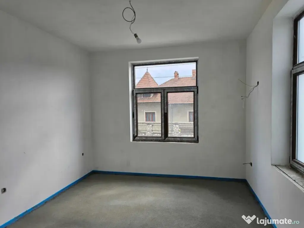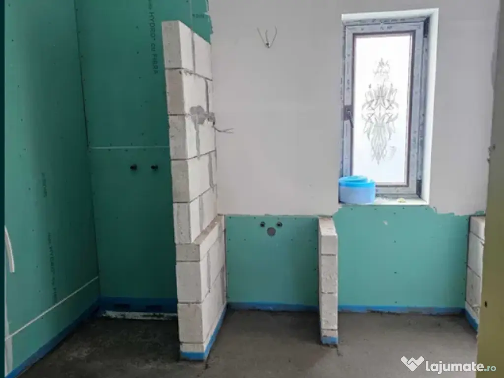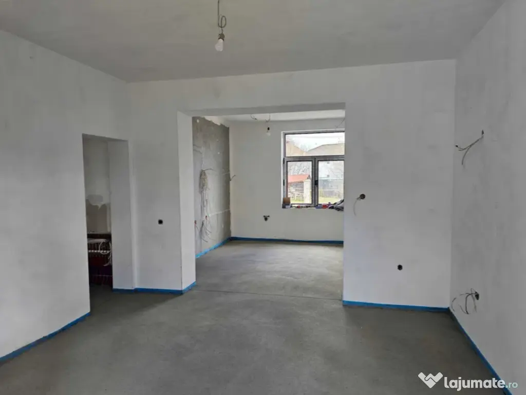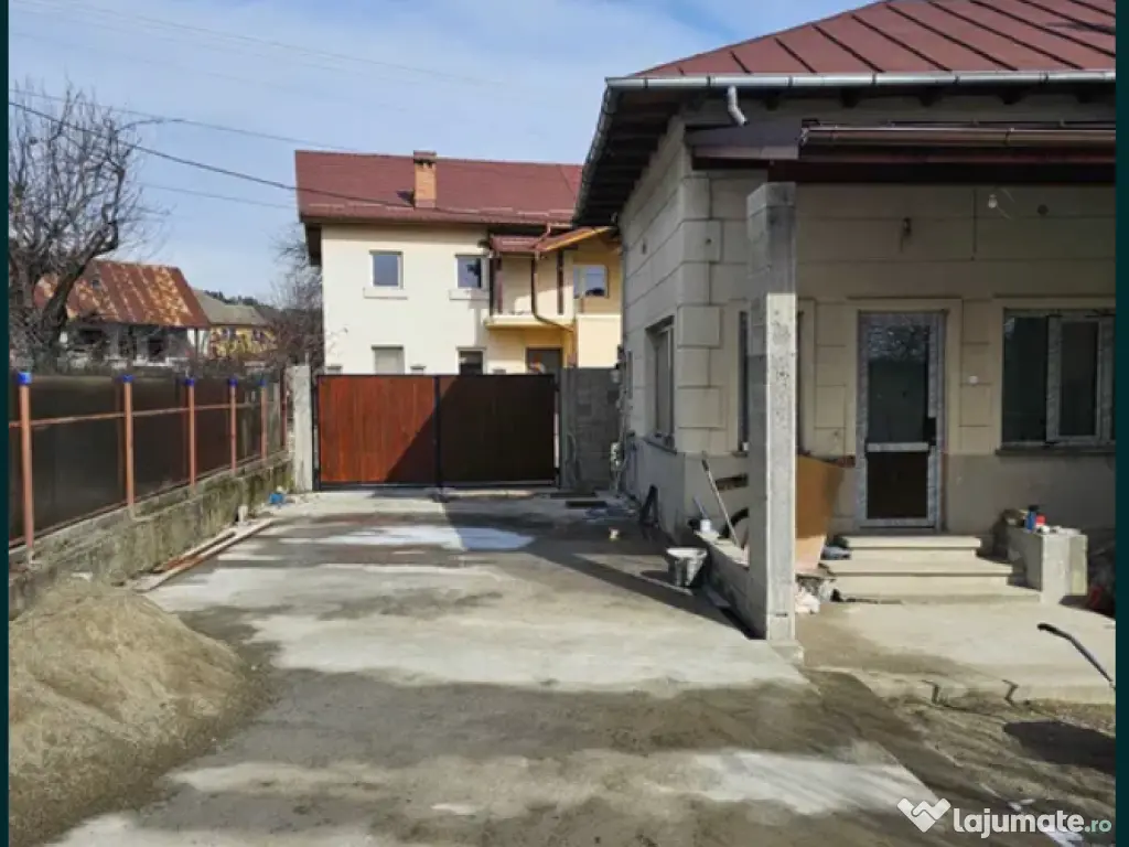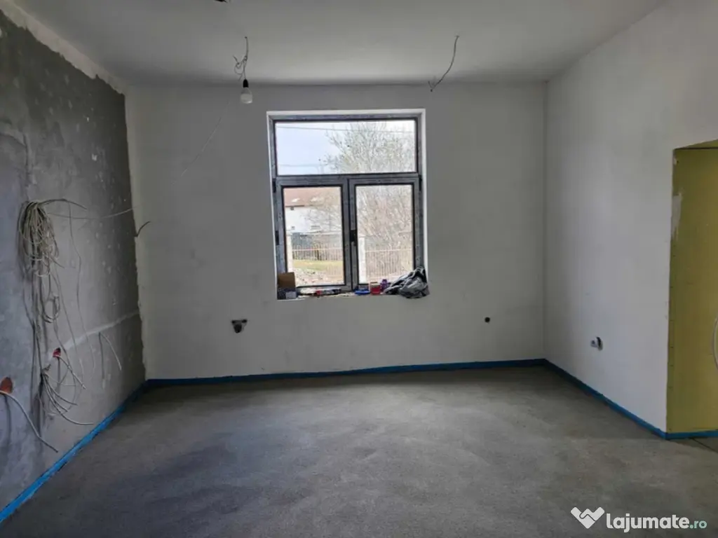 Interioarele finisate,placa de beton la parter,incalzire in pardoseala,instalatii electrice,apa,canalizare si gaz noi,tamplarie noua Salamander,curte betonata+spatiu verde,2 intrari (auto si pietonal),construita pe un teren de 400 mp la 1 km de centrul orasului.