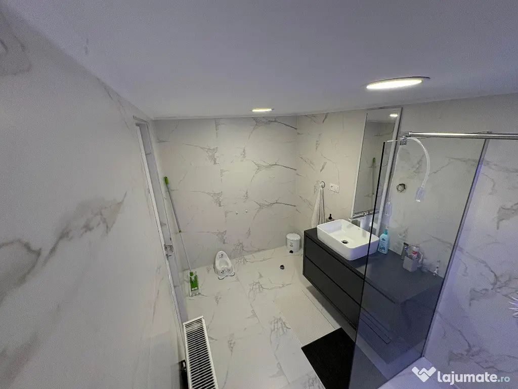 Vand casa in Deva, zona Calugareni, constructie din caramida din anul 1970, in curs de renovare, suprafata totala de teren 1024 mp, deschidere la strada de aproximativ 15 metri, suprafata construita 116 mp, acoperis cu tigla metalica noua, proaspat tencuita exterior si interior, instalatia electrica pe cupru, toate utilitatile sunt trase in casa, centrala termica pe gaz, tamplarie PVC cu geam termopan, instalatii sanitare in curs de montare, parchet achizitionat de calitate rezistent la apa. Casa este compusa din: 3 dormitoare, living, baie, bucatarie si camera tehnica. Pret: 130 000 euro neg sau schimb cu APARTAMENT + diferenta. Tel: 0724 293226. Mai multe poze si detalii pe www.apartamentedeva.ro sau la Agentia Imobiliara Ovidiu Deva.