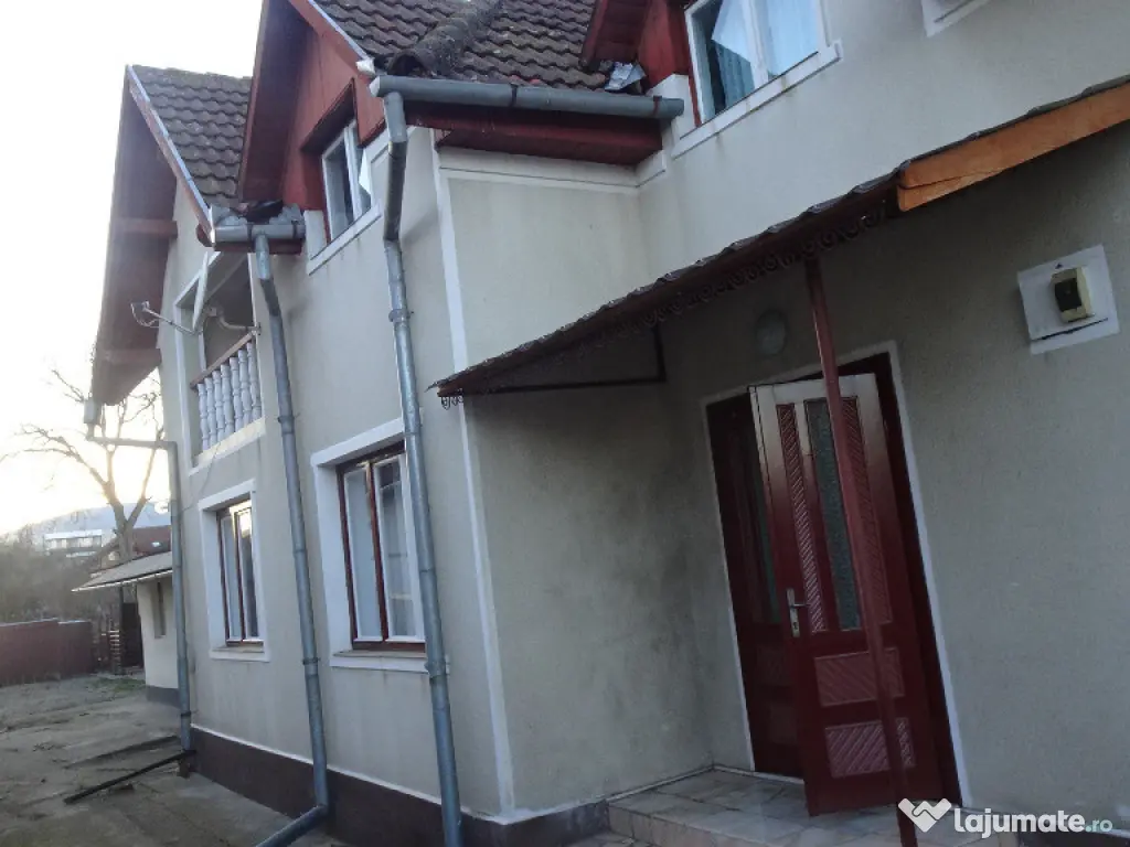 Vand casa in Deva, zona Ceangai, P+M, suprafata totala de teren 726 mp, deschidere la strada de aproximativ 15 metri liniari, acces auto in curte, suprafata construita desfasurata 182 mp, amprenta la sol 85 mp + anexe in suprafata de 79 mp, constructie din BCA si boltari din anul 2005, acoperita cu pod si tigla. Utilitati: apa, gaz, canalizarea, curent. Este compusa la parter din: 2 camere, hol central, bucatarie si baie. Mansarda din: 2 camere, hol central, 2 balcoane si baie. Anexe: camera, biucatarie, baie, magazie si spatiu pentru depozitare. Casa este dotata cu centrala termica pe gaz,instalatie de aer conditionat, tamplarie si geamuri din lemn, parchet lamelar, dusumele, gresie si faianta. Pret: 275 000 euro neg. Tel: 0724 293226. Mai multe poze si detalii pe www.apartamentedeva.ro sau la Agentia Imobiliara Ovidiu Deva.