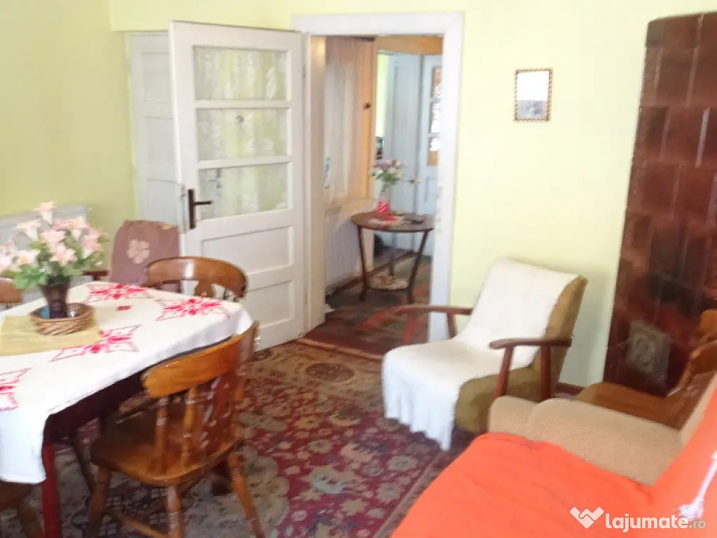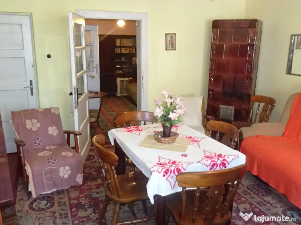Vand casa in Deva, zona ultracentrala, compusa din 2 corpuri unite, suprafata totala de teren 253 mp, acces auto in curte, suprafata construita desfasurata 144 mp, constructie de caramida din anul 1970, acoperita cu pod si tigla, toate utilitatile trase in casa (apa, gaz, curent, canalizire), incalzire cu centrala termica pe gaz, sobe de teracota pe gaz obtional, gresie, faianta, dusumele, parchet lamelar in bucatarie. Primul corp este compus din hol, 3 camere, bucatarie si baie. Al doilea corp din 2 camere, hol si baie. Pret: 145 000 euro negociabil. Tel 0724 293226. Mai multe poze si detalii pe www.apartamentedeva.ro sau la Agentia Imobiliara Ovidiu Deva.
