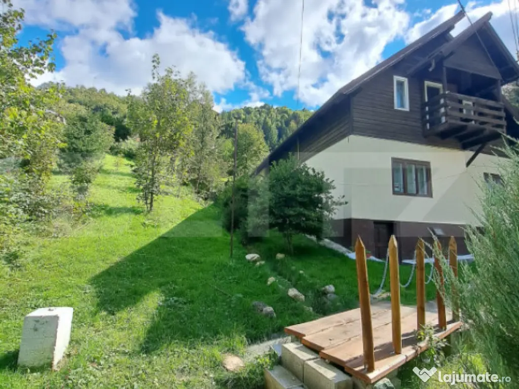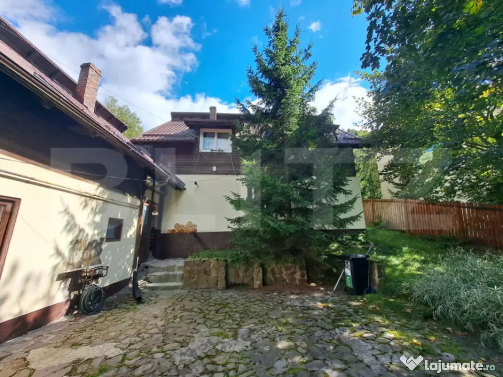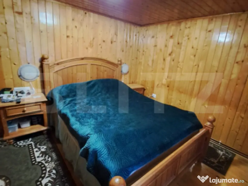 Pensiune / Proprietate turistică Moieciu – 2 corpuri, teren cu izvor propriu De vânzare proprietate deosebită în Moieciu, amplasată chiar pe DN, cu acces facil și potențial ridicat de investiție în turism sau rezidențial. ???? Două corpuri de clădire (P+M+Pod): Corp 1 (112 mp): living, 6 dormitoare, bucătărie, debara, 3 băi, pivniță. Corp 2 (101 mp): living, 3 dormitoare, bucătărie, cămară, 2 băi. ???? Facilități & dotări: Izvor propriu cu hidrofor + curte traversată de apă curgătoare. Racord la electricitate, internet, supraveghere video, firmă de pază. Gaz: Corp 2 racordat, Corp 1 cu aviz obținut. Canalizare: momentan fosă septică, urmează racordarea la rețea publică (proiect finalizat de autorități). Curte amenajată cu brazi, vegetație montană și loc de grătar. ???? Avantaje investiționale: Zonă turistică premium: Bran, Râșnov, Cheile Grădiștei, Piatra Craiului, Bucegi. ???? Interior rustic, specific de cabană montană. Corpul 2 locuibil imediat, Corpul 1 necesită reparații majore sau demolare ???? Preț avantajos pentru zonă. Ideal pentru pensiune, casă de vacanță sau reședință permanentă. Cod ofertă / ID BLITZ: P153409 Id intern: P153409 Număr niveluri imobil: 1 Număr Băi: 2 Utilități: Gaz