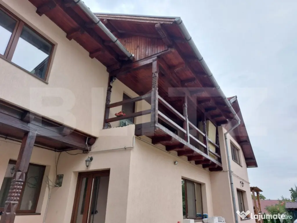 Locație: Săcele, Județul Brașov Descoperiți locuința perfectă pentru familia dumneavoastră! Această casă impresionantă, situată într-o zonă liniștită din Săcele, pe un teren de 900 mp, oferă un spațiu generos și un confort desăvârșit, fiind alegerea ideală pentru cei care caută un loc de trai modern, dar cu un caracter tradițional. Cu o construcție solidă și finisaje de calitate, această locuință este pregătită să își întâmpine noii proprietari. Beneficiile acestei case: Spațiu generos pentru întreaga familie Casa dispune de 255 mp utili, astfel că întreaga familie se va bucura de spațiu suficient pentru a trăi confortabil. Fiecare cameră este gândită pentru a oferi libertate de mișcare și intimitate. Cele 5 dormitoare, 2 livinguri și multiple băi asigură confortul pentru fiecare membru al familiei. Relaxare completă în livingul cu șemineu Unul dintre cele mai mari avantaje ale acestei case este livingul spațios, dotat cu un șemineu din cărămidă rustică – ideal pentru serile de iarnă în familie sau cu prietenii. Atmosfera caldă și primitoare va transforma fiecare moment petrecut acasă într-o adevărată relaxare. Economii de energie și confort termic pe tot parcursul anului Cu un sistem de încălzire în pardoseală la parter, fiecare cameră are un control precis al temperaturii, asigurând o atmosferă confortabilă pe toată durata anului. Izolația de înaltă calitate și termopanele cu trei foi de sticlă sunt factori esențiali pentru economiile la energie și menținerea unui climat plăcut în interior. Curte mare și spațiu verde Terenul de 900 mp oferă spațiu suficient pentru activități în aer liber. Puteți amenaja o grădină frumoasă, un loc de joacă pentru copii sau pur și simplu să vă bucurați de o oază de verdeață. Curtea este pavată, iar spațiul verde oferă o atmosferă relaxantă și liniștită, perfectă pentru petrecerea timpului liber. Foisor cu grătar și plită de vară Ideal pentru zilele de vară, foisorul cu grătar și plită este locul perfect pentru reuniuni de familie sau petreceri cu prietenii. Fiecare masă luată afară va fi o experiență de neuitat, într-un cadru intim și plăcut. Acces rapid la toate facilitățile orașului Deși situată într-o zonă liniștită, casa beneficiază de acces facil la infrastructura orașului Săcele și la principalele puncte de interes. Strada asfaltată asigură un drum ușor și rapid spre Brașov și spre alte zone de interes, iar proximitatea față de școli, magazine și locuri de agrement face viața de zi cu zi mai simplă și mai comodă. Locuință pregătită pentru confortul dumneavoastră Casa este pregătită pentru mutare imediată, cu finisaje moderne și o structură solidă din cărămidă Porotherm. Nu va trebui să faceți modificări suplimentare, iar izolația de calitate asigură un mediu confortabil, indiferent de sezon. Siguranță și intimitate Datorită zonării liniștite, dar totodată accesibile, această casă vă garantează intimitate și siguranță pentru întreaga familie. Vă veți simți acasă într-un cadru liniștit și relaxant, departe de agitația cotidiană, dar aproape de facilități și locuri de interes. Detalii tehnice: Suprafață utilă: 255 mp Teren: 900 mp Structura: Cărămidă Porotherm cu izolație Încălzire: Pardoseală (separate pe camere) Centrala pe gaz: 32 KW Feronerii: Termopane 82mm, trei foi de sticlă Izolație la acoperiș: 30 cm vată bazaltică Canalizare și apă: Municipale Curte pavata + spațiu verde și anexe gospodărești Locație excelentă pentru familie: IN CURTE AVEM SI UN CIUBAR GATA INSTALAT pentru petreceri si seri romantice. Casa se află într-o zonă rezidențială liniștită, dar totodată la câțiva pași de toate facilitățile necesare. Accesul rapid la Brașov și la principalele puncte de interes din Săcele face ca această proprietate să fie ideală atât pentru viața de zi cu zi, cât și pentru escapadele de weekend. Pentru o vizionare și detalii suplimentare, contactați-ne. Cod ofertă / ID BLITZ: P137745 Id intern: P137745 Număr niveluri imobil: 1 Număr Băi: 2 Curent Apă Canalizare Gaz