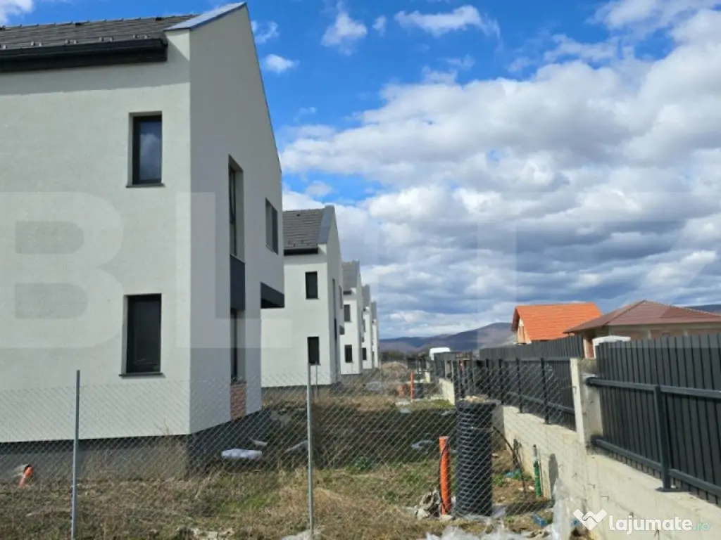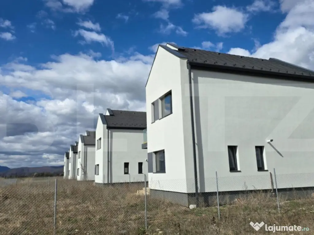 Blitz propune spre vanzare un ansamblu modern de case individuale, situate în localitatea Mihai Viteazu. Este o oportunitate excelentă pentru cei care caută un cămin nou într-o zonă liniștită și accesibilă. Cu o suprafață utilă de 110 mp pe două niveluri și un teren generos de 509 mp, această proprietate oferă confort și spațiu pentru întreaga familie. La parter, veți găsi un living luminos și spațios, conectat fluid cu o bucătărie modernă, formând un open space generos, ideal pentru petrecerea timpului în familie sau pentru a primi oaspeții. Un plus de comoditate îl reprezintă și camera tehnică, perfectă pentru depozitarea diverselor utilități casnice, precum și adăpostul auto, asigurând protecția mașinii în orice condiții meteorologice. Etajul găzduiește 3 dormitoare, oferind suficient spațiu pentru odihnă și intimitate. Dormitorul principal este însoțit de o garderobă, oferind posibilitatea de organizare eficientă a hainelor și accesoriilor. Un balcon încântător completează spațiul de la etaj, oferind priveliști încântătoare către peisajul din jur. Podul circulabil reprezintă o oportunitate excelentă pentru extinderea spațiului locuibil, oferind posibilitatea de a crea încăperi suplimentare sau de a amenaja un spațiu de depozitare generos. Proprietatea este livrată semifinisată, cu materiale de înaltă calitate și finisaje moderne. Beneficiați de izolație exterioară eficientă, cărămidă aparentă și tencuieli decorative, asigurând o estetică plăcută și o izolare termică de calitate. Instalațiile termice și sanitare sunt pregătite pentru a fi finalizate conform preferințelor dvs., iar încălzirea în pardoseală la parter și caloriferele la etaj asigură confortul termic în orice moment al anului. Cu o centrală termică proprie Wiessmann și un boiler cu două serpentine, veți beneficia de un confort termic și de apă caldă în mod constant. Ferestrele tripan termoizolante din PVC asigură o izolare eficientă fonică și termică, iar acoperișul din țiglă de beton Bramac oferă protecție durabilă împotriva intemperiilor. Proprietatea dispune de toate utilitățile necesare, inclusiv conexiune la rețeaua de gaz și curent trifazic, put cu hidrofor conectat la pânza freatică și fosa septica. Sunt disponibile 8 case. Pretul afisat include TVA de 21%. Contactați-ne pentru mai multe informații sau pentru a programa o vizionare! Cod ofertă / ID BLITZ: P105780 Id intern: P105780 Număr niveluri imobil: 1 Număr Băi: 2 Nr. locuri parcare: 2