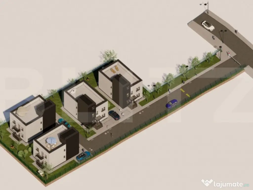 Blitz ofera spre vanzare 4 case individuale situate in zona Avram Iancu, in imediata apropiere a statiilor de autobuz, magazine, spatii verzi si centura Donath/Grigorescu. Constructia v-a fi finalizata la finalul anului 2025 si are un regim de inaltime P+1. Dispune de o suprafata de 132 mp utili si 300 mp de teren. Compartimentarea este practic gandita si se prezinta astfel; parter: hol, living generos cu bucatarie si loc de luat masa, birou/ dormitor, baie, spatiu de depozitare si doua terase. etajul 1: hol, 2 dormitoare unul cu dressing, baie si spatiu de depozitare, mai sus avem o terasa circulabila de 60mp. Terenul din jurul casei este de 204mp. Este dotata cu: centrala termica proprie, incalzire in pardoseala, geamuri termopan cu tamplarie PVC, casa fiind din caramida si izolatie de 15cm. Casa se preda la stadiul de semifinisat in toamna anului 2026 si fiecare casa dispune de un loc de parcare. Pentru mai multe detalii si vizionari, nu ezitati sa ne contactati! Cod ofertă / ID BLITZ: P138871 Id intern: P138871 Număr niveluri imobil: 1 Număr Băi: 2 Nr. locuri parcare: 1 Curent Apă Canalizare Gaz