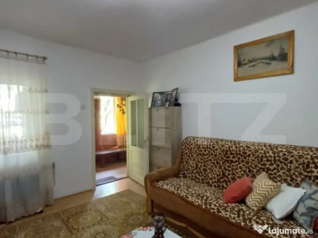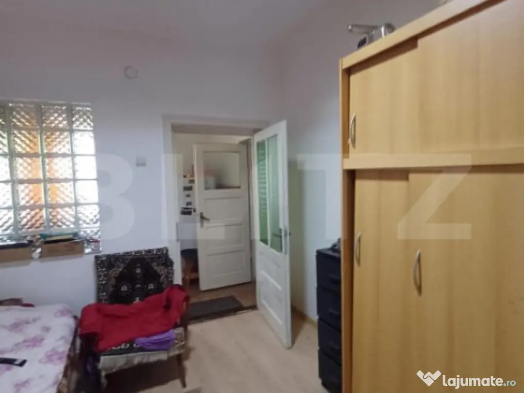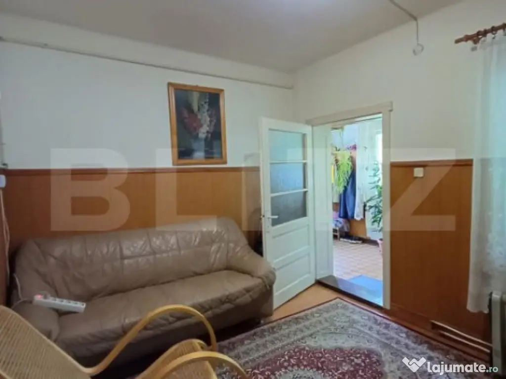 Blitz propune spre vanzare aceasta casa situata in Turda in zona centrala in apropiere de spital. Cu o suprafata construita de 165 mp pe un teren cu supratafa de 802 mp, aceasta este compusa din 2 apartamente separate. Primul atartament este compus din living, 2 dormitoare, hol si 1 baie cu geam. Al doilea apartament are zona de bucatarie cu camara, 2 camere, 2 holuri si o baie mica. Incalzirea se face cu centrala proprie. In camere avem geamuri termopan si parchet laminat. Casa este izolata pe exterior. Intrarea in curte se face pe o alee de circa 4 m latime. Proprietatea are si 2 garaje separate. Unul, cu o supratata de 51 mp in care este cuprinsa si o magazie. Aceasta anexa este dotata cu curent trifazic. Al doilea garaj, 18 mp este folosit ca spatiu de depozitare. De aici se ajunge in beci. In gradina, regasim un solar, zona de legume si livada cu pomi fructiferi. Aceasta casa din Turda ofera o oportunitate perfecta pentru cei care cauta un refugiu intr-o zona linistita de case. Va invitam sa va alaturati acestei zone linistite si sa va bucurati de toate avantajele pe care le ofera aceasta locatie. Contactati-ne astazi pentru a programa o vizionare si a face primii pasi spre a deveni proprietarul acestei case! Cod ofertă / ID BLITZ: P146941 Id intern: P146941 Număr Băi: 2 Curent Apă Canalizare Gaz