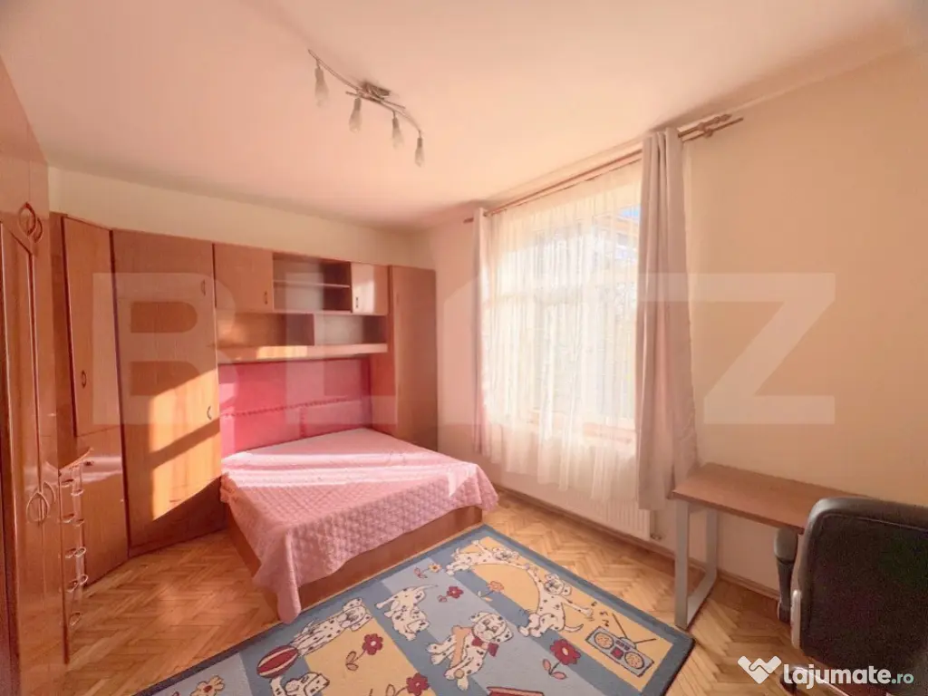 Blitz propune spre vanzare o casa individuala in cartierul Grigorescu, zona Parcului 14 Iulie , intr-o zona rezidentiala privata de case si vile. Casa are o suprafata de 196 mp amprenta la sol si suprafata de teren aferenta de 279 mp. Compartimentarea casei este urmatoarea: Parter : 4 camere, bucatarie, 2 holuri, camara de alimente, baie, WC, 1 magazie. Mansarda: 3 camere, baie. Imobilul a fost renovat in urma cu 15 ani in intregime . Beneficiaza de geamuri termopan tamplarie PVC, centrala termica proprie, usa din PVC la intrare. Incalzirea se realizeaza prin intermediul centralei termice proprii dar beneficiaza si de un semineu. Acoperisul a fost schimbat in urma cu 4 ani. Lateral constructiei exista posibilitatea de a parca un autovehicul ( parcela de 21 mp ) , iar pe strada principala se paote parca cu abonament la Primarie. Casa este retrasa de la strada principala . Cod ofertă / ID BLITZ: P141651 Id intern: P141651 Număr niveluri imobil: 1 Număr Băi: 3 Nr. locuri parcare: 1 Curent Apă Canalizare Gaz
