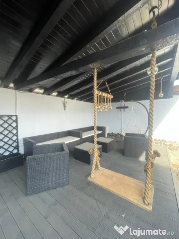 Curtea este complet amenajată, pavată cu piatră, cu loc de parcare pentru 2 mașini, zonă de relaxare cu foișor, piscină cu sistem de filtrare, fiind spațiul perfect pentru petrecerea timpului liber.