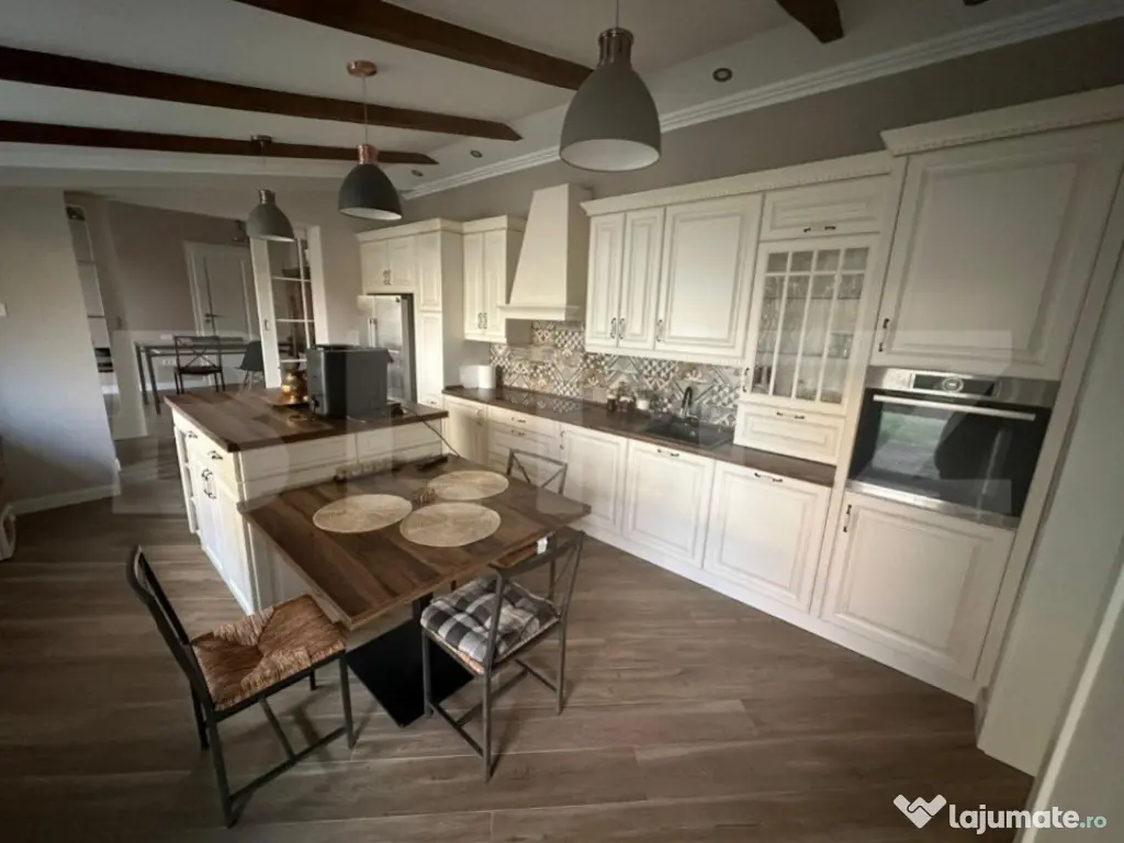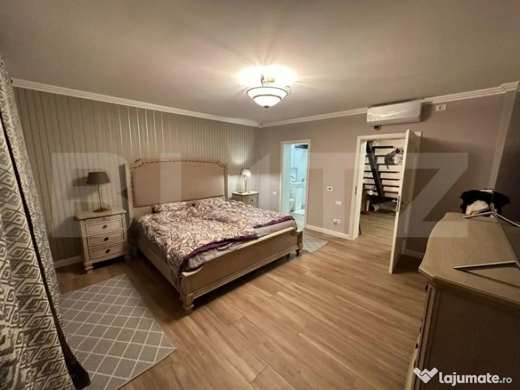 Blitz va ofera spre vanzare o casa individuala situata intr-o zona accesibila, in apropierea facilitatilor orasului, Mures- Brancoveanu. Amplasata pe un lot de 420, detine o suprafata utila de 220 mp. Este compartimentata pe doua niveluri astfel: P: 2 dormitoare, living, dining, bucatarie, 2 bai, wc servici, camera tehnica Mansarda: open space cu suprafata de 60 mp, baie, loc de depozitare Imobilul este integral renovat, cu instalatia electrica GEWISS, sistem protectie supratensiune, geamuri tripan profil SALAMANDER, usi EXIMLEMN la comanda, mobilier integral la comanda, sistem de climatizare, sistem de incalzire in pardoseala EMMET automatizat cu termostat digital in fiecare incapere, centrala VIESSMAN cu boiler 150l, acoperis izolat, izolatie exterioara 15 cm. Casa dispune de beci 12 mp, acces auto in curte, sistem de supraveghere video, sistem de alarma si videointerfon. Se vinde la stadiul de mobilat si utilat. Cod ofertă / ID BLITZ: P6758 Id intern: P6758 Număr niveluri imobil: 1 Număr Băi: 4 Nr. locuri parcare: 2