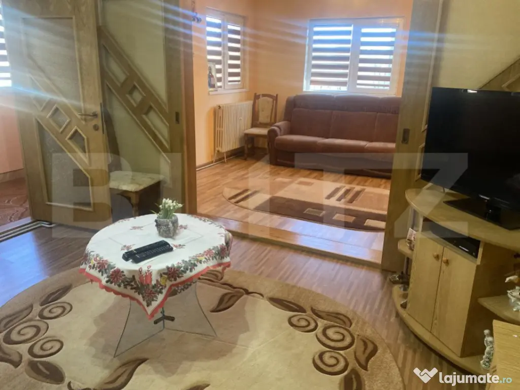 Blitz va ofera spre achizitie casa individuala, decomandata, solida, avand o suprafata de 130 mp si teren de 221 mp. Locuinta este finisata, complet utilata si mobilata, dispune de 3 camere, 1 hol, 1 baie, bucatarie, usi si parchet de calitate, faianta si gresie, centrala termica BOSCH ultima generatie (in garantie). Casa dispune de o curte primitoare cu un loc de parcare, gratar din caramida, anexa cu suprafata de 28 m.p. si beci cu suprafata de 12 mp. Casa are fundatie din beton, pereti din caramida, izolatie termica exterioara din polistiren, acoperis tabla Lindab, ferestre cu geam termopan. Va asteptam la vizionare! Cod ofertă / ID BLITZ: P132763 Id intern: P132763 Număr Băi: 1 Curent Apă Canalizare Gaz Climă