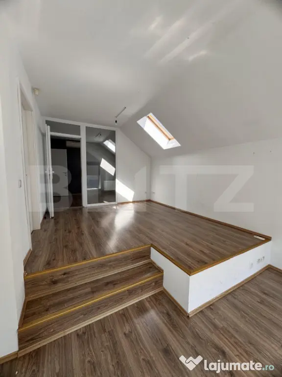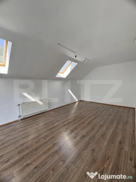 Etaj : hol cu casa scarii, 4 dormitoare, 2 grupuri sanitare, terasa de 21 mp si balcon de 8 mp