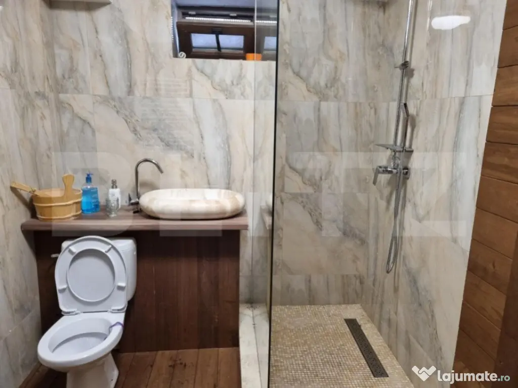 Blitz va ofera o casa splendidă in Ipotesti ce se află într-un cartier privat, cu acces controlat prin barieră, asigurând intimitate și securitate. Cu o suprafață generoasă de 650 de metri pătrați de teren și o locuință spațioasă de 380 de metri pătrați, această proprietate oferă tot confortul și luxul necesar unei vieți moderne. Exteriorul casei este o oază de liniște și frumusețe, cu o grădină amenajată cu grijă, perfectă pentru recreere și momente de relaxare. Proprietatea dispune de un garaj dublu, cu stație de încărcare pentru vehicule electrice. Interiorul casei este cu adevărat remarcabil, împărțit în 4 dormitoare elegante, o sufragerie spațioasă, un dining rafinat, o bucătărie modernă, o terasă generoasă și nu mai puțin de 5 băi luxoase. Aici, confortul și funcționalitatea se întâlnesc cu designul de înaltă calitate. Casa este dotată cu facilități premium, inclusiv o saună pentru relaxare. Pentru o experiență completă și fără efort, casa este oferită spre vânzare complet mobilată și utilată, exact așa cum se poate vedea în fotografiile atașate. Fiecare detaliu a fost ales cu grijă pentru a crea un mediu cald și rafinat, perfect pentru o viață de familie sau pentru a primi oaspeți într-un cadru elegant. Această proprietate reprezintă o oportunitate unică de a trăi în lux și confort, într-o locație exclusivă din Ipotesti. Cod ofertă / ID BLITZ: P96334 Id intern: P96334 Număr niveluri imobil: 2 Număr Băi: 5 Nr. locuri parcare: 4