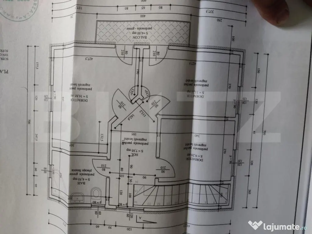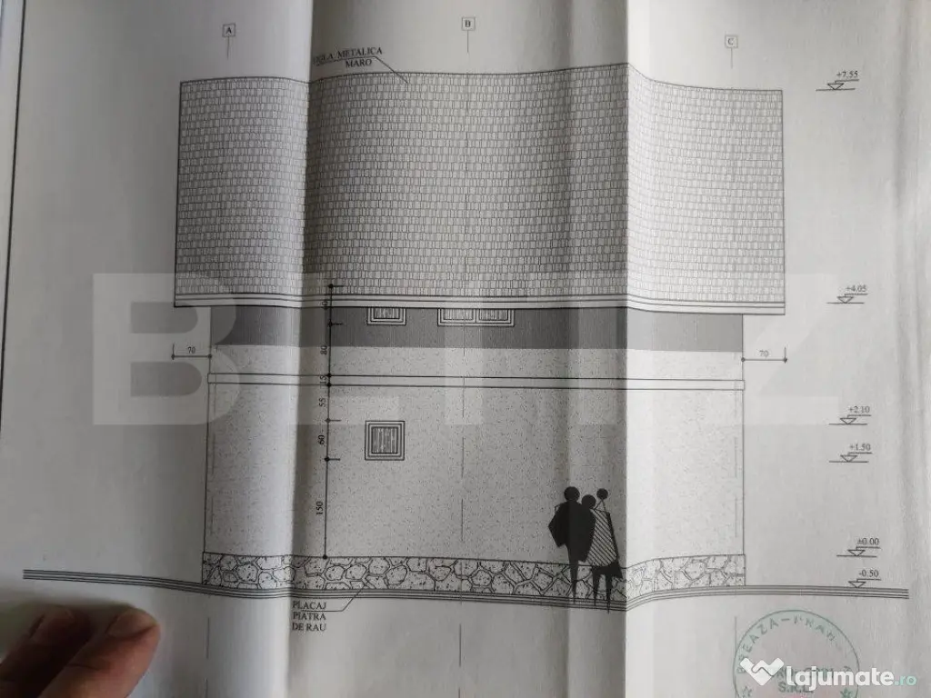Blitz propune spre vanzare o casa cu 4 camere, cu o suprafata de 106 mp utili si un teren cu suprafata de 500 mp. Compartimentarea acesteia se prezinta astfel: la parter: hol, bucatarie, living, baie; la etaj: 3 dormitoare, baie, hol, balcon la 2 camere. Zona in care se afla casa este una linistita, cu acces spre diferite puncte de interes. Casa este la rosu la interior si la gri la exterior si este racordata la apa si energie electrica. Cod ofertă / ID BLITZ: P14035 Id intern: P14035 Număr niveluri imobil: 1 Număr Băi: 1 Curent Apă