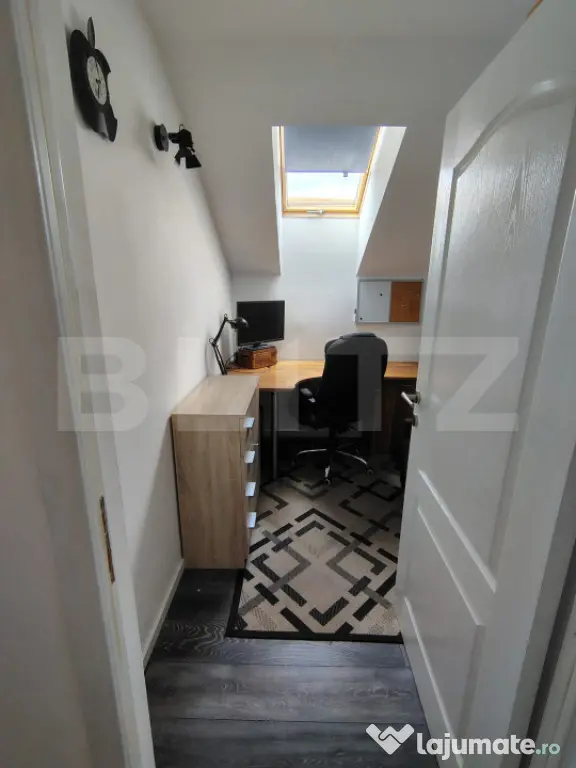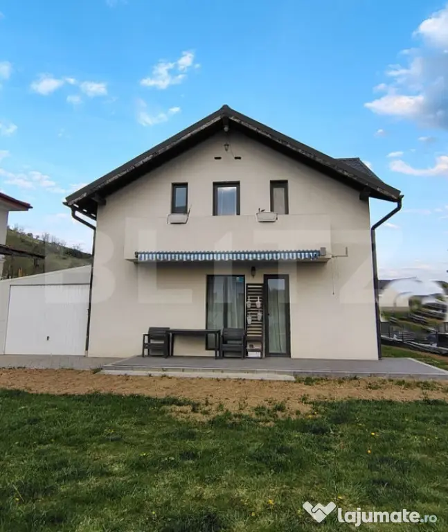 BLITZ oferă spre vânzare casă individuală, o proprietate modernă, situată într-o zonă rezidențială, în cartierul Tineretului din Iris. Casa prezintă un regim de înălțime P+E+Pod, cu curte generoasă și aerisită, cu garaj acoperit. Proprietatea dispune de o suprafață utilă de 108 mp, amplasată pe un teren de 486 mp, edificată în anul 2017. Compartimentare atent realizată: • Parter: hol de acces, living cu zonă de dinning și ieșire pe terasă acoperită cu marchiză, bucătărie deschisă, baie de serviciu cu duș, debara dispusă sub scări, cameră tehnică; • Etaj: hol de acces, 2 dormitoare dintre care unul cu dressing, 1 cameră birou, baie, 2 balcoane. Casa a fost construită pentru uz personal, acest lucru se reflectă în calitatea execuției, în materialele folosite și în modul în care a fost gândită pentru confort real. Din cărămidă Porotherm de 30 cm, cu izolație exterioară din vată bazaltică de 15 cm și tâmplărie cu geam termopan cu eficiență termică superioară. Podul și etajul sunt izolate cu vată minerală, beneficiază de sistem de pod cald, cu izolație la nivelul tavanului până în coama acoperișului, astfel că se predă în stadiul finisat, mobilată și utilată. Sistemul de confort practic include: centrală termică Ferroli, încălzire în pardoseală în zonele cu gresie, radiatoare în camere, boiler cu dublă serpentină, alimentat electric sau din panouri solare, termoșemineu conectat la sistemul de încălzire al casei, aer condiționat tip invertor Daikin capacitate 18.000 BTU Exterior: curte pavată, locuri de parcare, garaj, foișor cu cuptor, grătar și sobă, fântână de 9 m pentru irigații și sistem automatizat pentru pompă, sprinklere și alimentarea cu apă în zona foișorului, împrejmuire cu gard de piatră și profile metalice, poartă acces auto automatizată. Este o proprietate perfectă pentru așteptări și nevoi de calitate superioară. Pentru o experiență relevantă și mai multe detalii vă așteptăm la o vizionare! Cod ofertă / ID BLITZ: P169803 Id intern: P169803 Număr niveluri imobil: 1 Număr Băi: 2 Curent Apă Canalizare Gaz Climă
