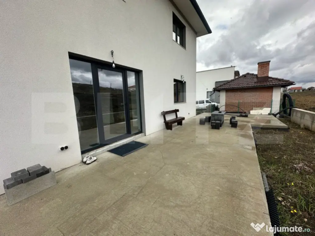 Va propunem spre vanzare o casa individuala, situata la intrare in Chinteni, in zona ansamblului de blocuri. Casa este construita pe un teren de 600 mp, are o amprenta la sol de 81 mp, si o suprafata construita desfasurata de 241 mp. Compartimentarea este gandita in felul urmator: -la demisol: garaj, baie, camera tehnica -la parter living cu bucatarie, baie -la etaj 3 dormitoare si o baie Casa se vinde la stadiul de finisat, la cele mai inalte standarde calitative, iar confortul termic se realizeaza prin curent electric. Pe exterior casa este izolata, iar gardul si poarta de acces sunt amenajate. Casa se poate achizitiona si prin credit. Va asteptam la vizionare! O zi buna! Cod ofertă / ID BLITZ: P143034 Id intern: P143034 Număr niveluri imobil: 1 Număr Băi: 3 Curent Apă Canalizare