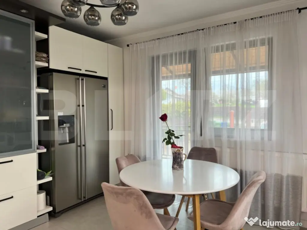 Curtea este pavată și amenajată si beneficiaza de un foișor echipat cu grătar, plită și mini bucătărie, ideal pentru petrecerea timpului în aer liber alături de familie și prieteni.