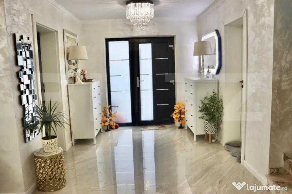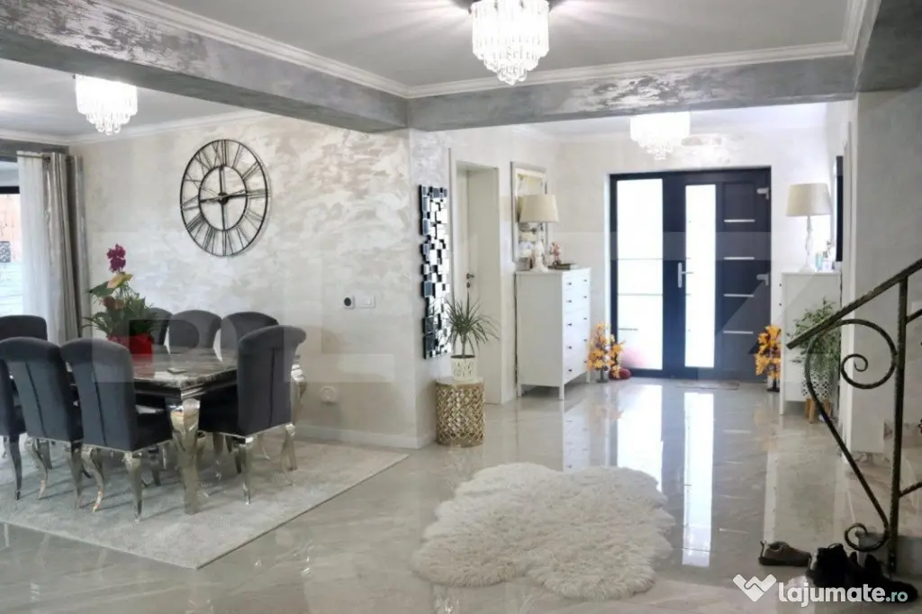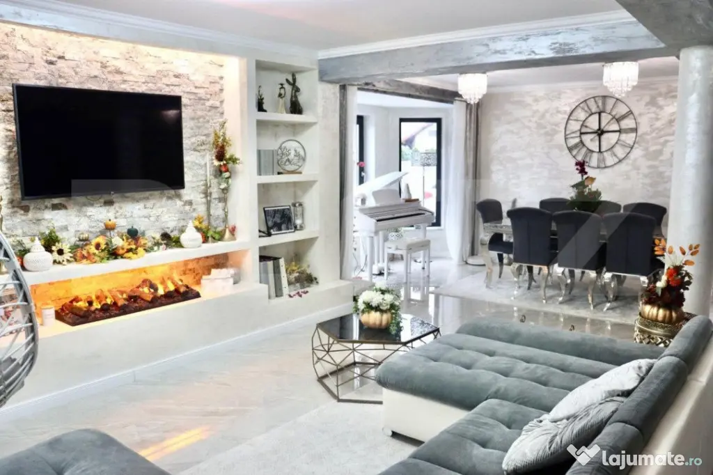 Casa este construita din materiale de cea mai inalta calitate si este mobilata si utilata de lux.
