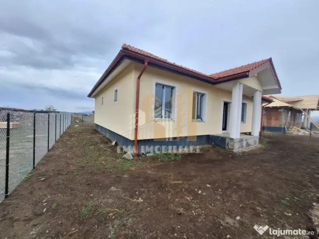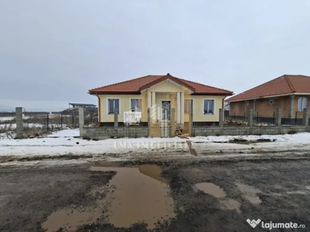 Casa este finisată exterior , la interior este la rosu, gardul va fi semiamenajat și utilitățile trase ( apa, curent electric , fosă septică și instalație pentru legarea la canalizare care în acest moment se află la 150m distanta)