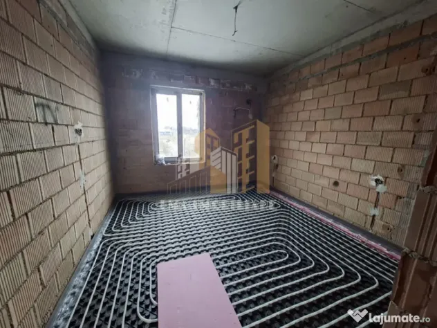 -O casă la roșu în interior, izolata finisata exterior,interior are montata instalatia de incalzire in pardoseala si instalatii electrice.
