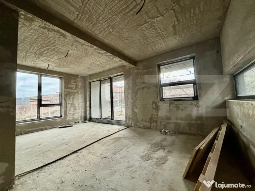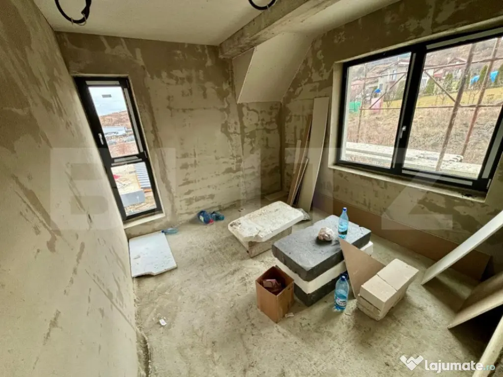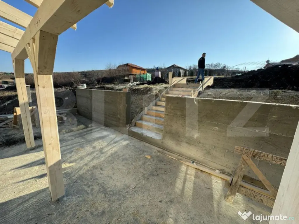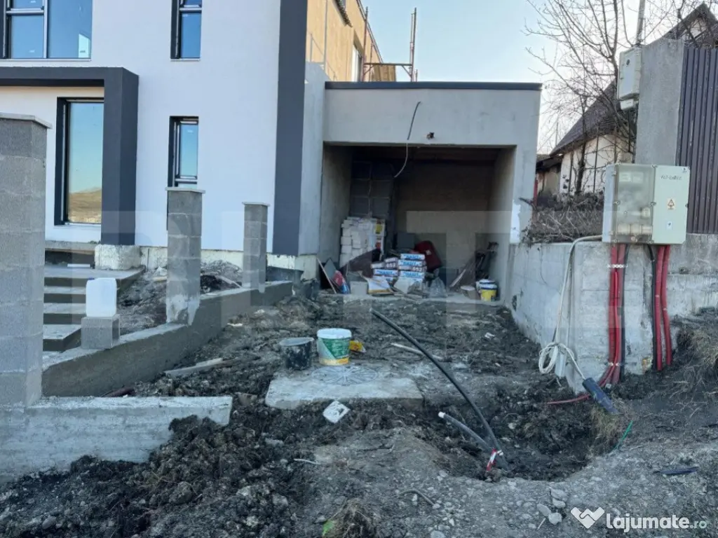 Blitz va ofera spre vanzare o casa individuala situata in zona nou dezvoltata a comunei Chinteni chiar la intrare, pe o strada cu putine case, cu o suprafata util de 136mp, terasa 23mp, garaj 21mp si teren aferent de 700mp, cu situație juridica clara cu CF, cu drumuri cedate spre primarie în lățime de 8m. Terenul dispune de utilitati cu contor la apa, curent, gaz, precum și sistem de canalizare. Casa se preda la stadiul de semifinisat, exteriorul cu decorativa , geamuri termopan, interior instalatii electrice, tencuiala cu plasa si 2 maini de glet, incalzire in pardoseala, cu centrala propie pe curent de ultima generatie economica, boiler si sapa. Compartimentarea acesteia este gandita astfel: Parter: un hol generos de intrare, camera depozitare langa garaj, baie, bucatarie, dining si living spatios cu iesire pe terasa. Etaj: dormitor matrimonial cu dressing si baie proprie, 2 dormitoare si baie. Casa este construita cu materiala de calitate premium, din BCA Ytong de 25 cm, cu coeficient de transfer termic redus. Acoperișul va fi din tigla cu o expoziție sudica perfecta pentru montarea unui sistem de panouri fotovoltaice. Detine incalzire in pardoseala sus si jos, instalație apa caldă apa rece, sanitare si proiect de gradina. Termen de finalizare Septembrie 2025. CF intabulat pe persoana fizica. Pentru mai multe detalii si vizionari, nu ezitati sa ne contactati!. Cod ofertă / ID BLITZ: P93655 Id intern: P93655 Număr niveluri imobil: 1 Număr Băi: 3 Nr. locuri parcare: 1 Curent Apă Canalizare Gaz