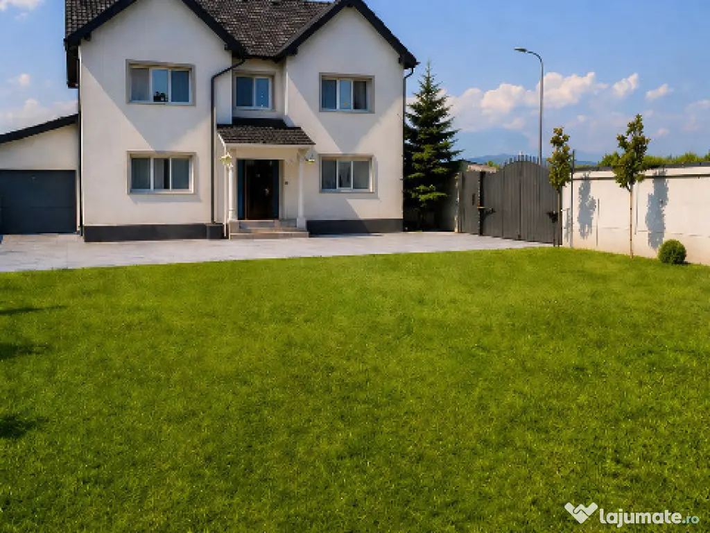 Proprietar, vând casă individuală în Cristian, jud. Brașov, construită în 2015, amplasată pe teren de 806 mp, cu 228 mp utili (114 mp parter + 114 mp etaj), mansardă open-space pe toată suprafața casei și garaj încălzit de 26 mp, cu acces direct din casă.