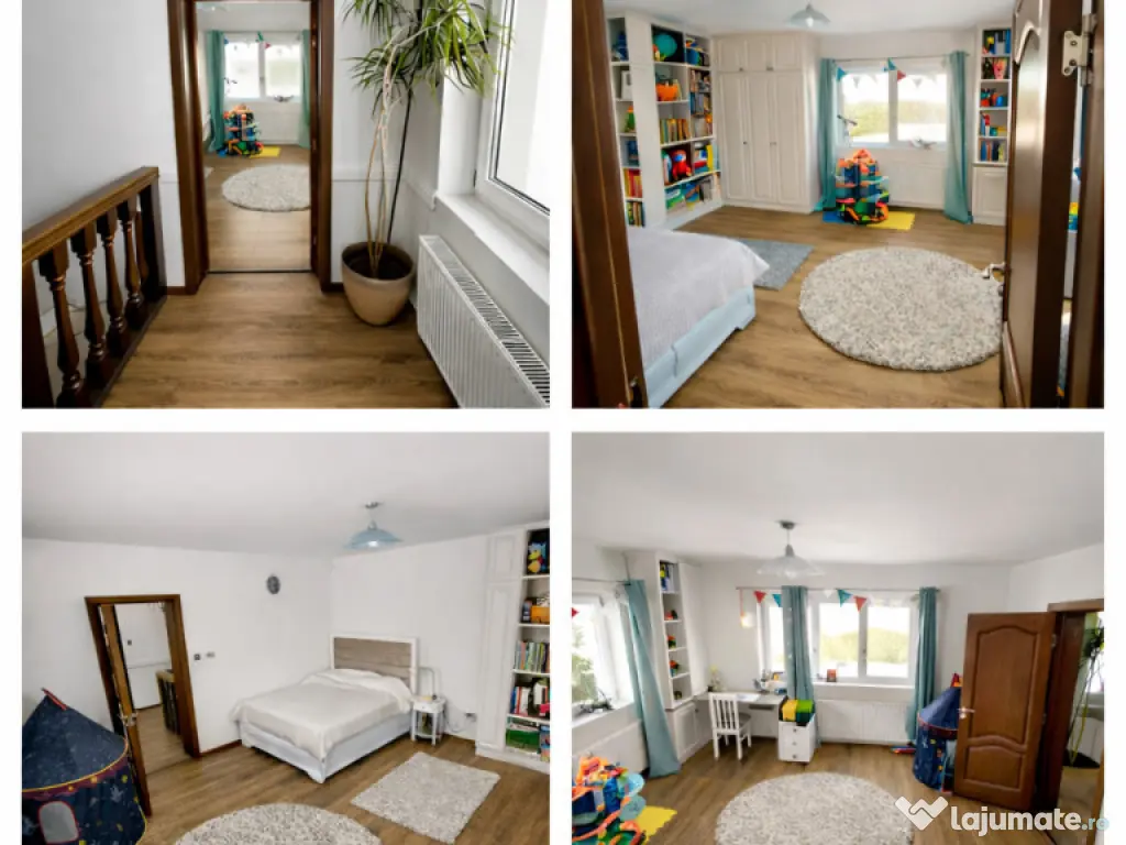 Etaj: dormitor matrimonial cu dressing și baie proprie, 2 dormitoare, baie secundară.