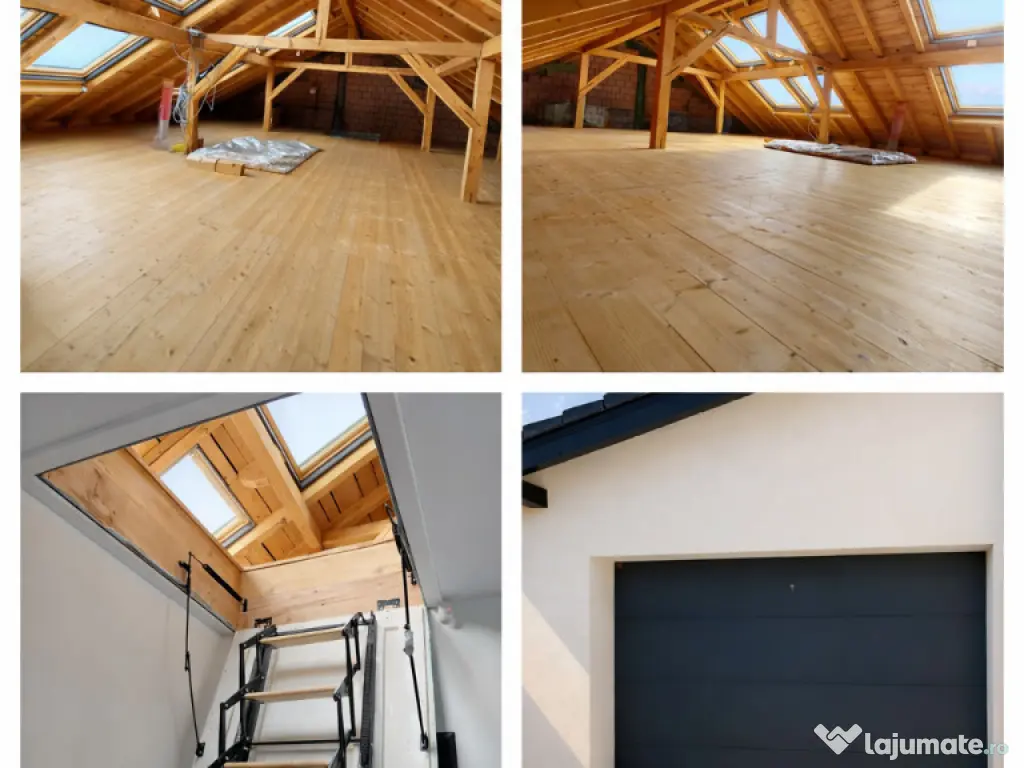 Mansardă: spațiu deschis pe toată suprafața casei, înălțime maximă 3,2 m, 6 ferestre Velux, ideal pentru loc de joacă, birou, hobby sau zonă de relaxare.