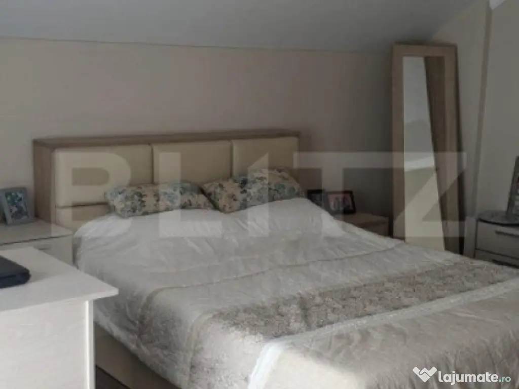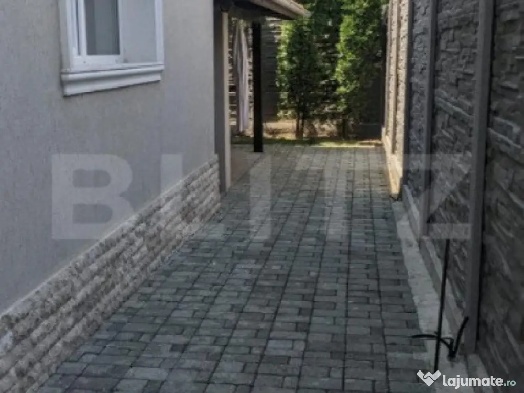 Blitz va oferta spre vanzare o casa individuala in Dumbravita, complet mobilata si finisata, situata intr-o zona de case. Casa se afla in imediata apropiere de strada principala, scoala, parcul central al comunei. Este constructie noua, finalizata in anul 2018, cu o suprafata utila de 161 mp si un teren total de 725 mp. Este dispusa pe 2 niveluri, oferind urmatoarea compartimentare: Parter: living, bucatarie, camara, baie, camera, terasa acoperita, anexa Mansarda: dormitor cu dressing si balcon, 2 dormitoare, baie Curtea este imprejmuita si amenajata cu gazon, pomi fructiferi, plante decorative si garaj. Va asteptam pentru vizionare! Cod ofertă / ID BLITZ: P6882 Id intern: P6882 Număr niveluri imobil: 1 Număr Băi: 2 Nr. locuri parcare: 2