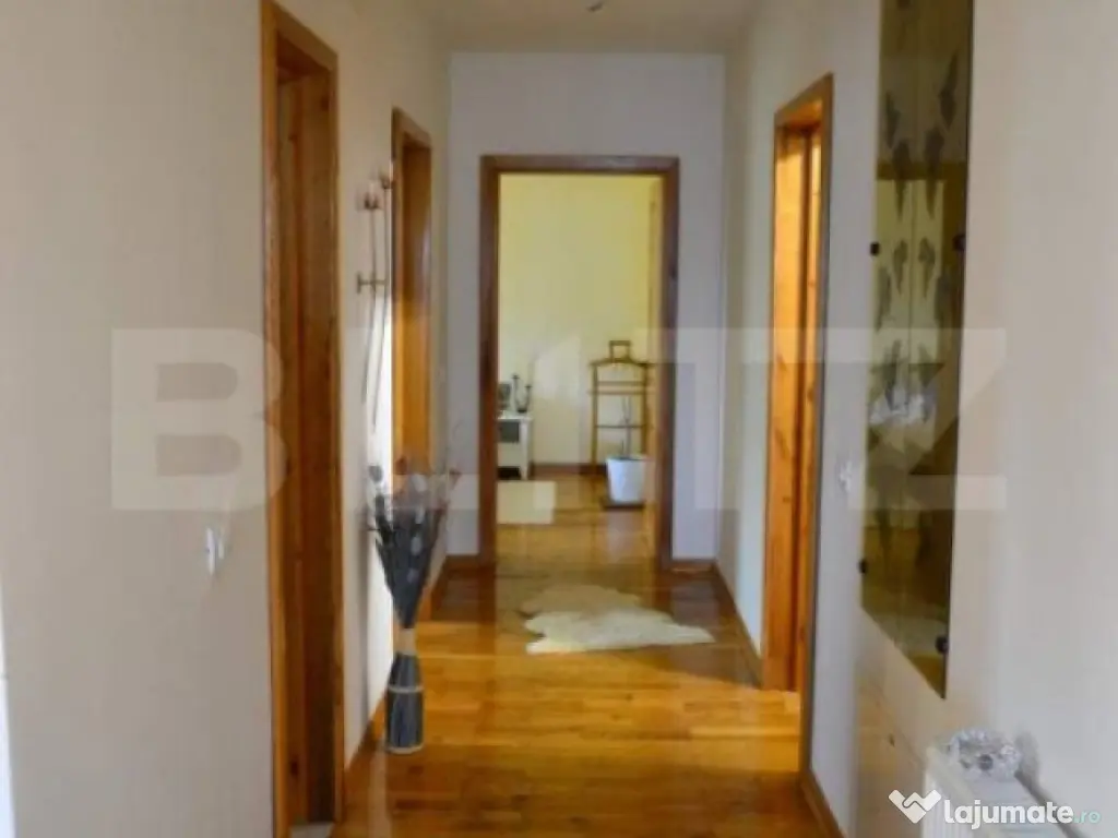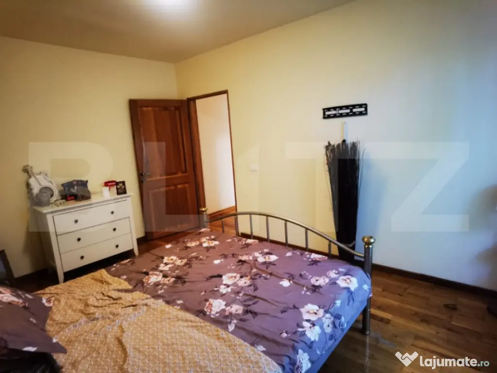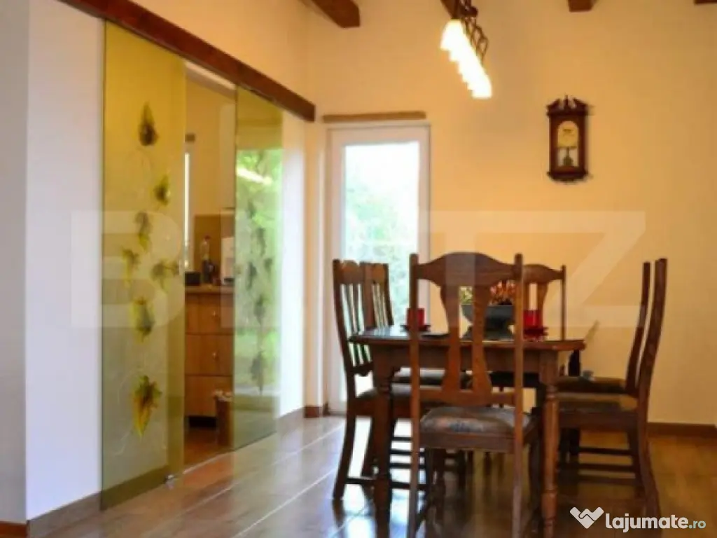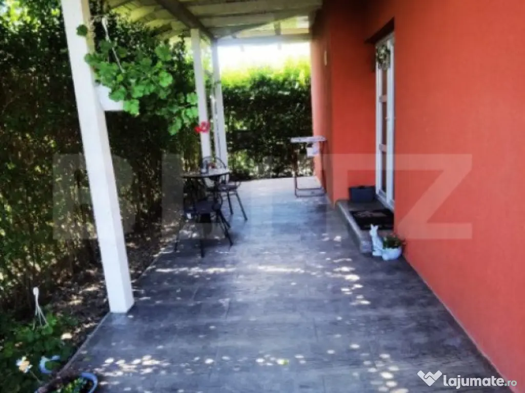 Blitz are placerea sa va prezinte spre vanzare o casa individuala, pe parter, cu 5 camere situata in Giroc. Suprafata utila a acestuia este de 130 mp utili si 350mp teren in folosinta. Compartimentarea casei este gandita astfel: 3 dormitoare, 4 bai( 1 wc servici in zona barbeque), 1 living open-space cu zona de dinning, 1 bucatarie inchisa, 1 dressing, 1 terasa la intrare, o terasa acoperita in zona de barbeque + spatii de depozitare langa si pod cu posibilitate de mansardare sau depozitare. Constructia acesteia respecta standardele, fundatie de beton, armaturi, structura in cadre, porotherm 25, izolatie ipso 10, geamuri tripan, centrala proprie pe gaz, curent trifazic, sistem de irigare, etc. Daca iti cauti casa perfecta te invit la vizionare Cod ofertă / ID BLITZ: P129572 Id intern: P129572 Număr Băi: 4 Nr. locuri parcare: 2 Curent Apă Canalizare Gaz
