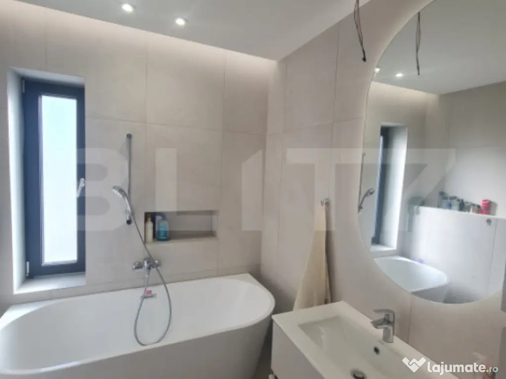 Blitz ofera spre vanzare o casa individuala mobilata si utilata. Imobilul este situat la liziera padurii, construit din caramida si izolat termic la exterior cu polistiren de 20 cm, dispune de sistem de supraveghere video, incalzire in pardoseala, centrala termica proprie, semineu, tamplarie PVC cu geam termopan si compartimentat astfel: Demisol; garaj, camera hobby, baie si un apartament nefinisat open space. Parter; living, bucatarie, birou, camara, dressing, baie si terasa. Etaj; hol, 3 dormitoare, 2 dressinguri, 2 bai si terasa. Pentru mai multe detalii nu ezitati sa ne contactati. Cod ofertă / ID BLITZ: P164774 Id intern: P164774 Număr niveluri imobil: 1 Număr Băi: 4 Nr. locuri parcare: 3 Curent Apă Canalizare Gaz