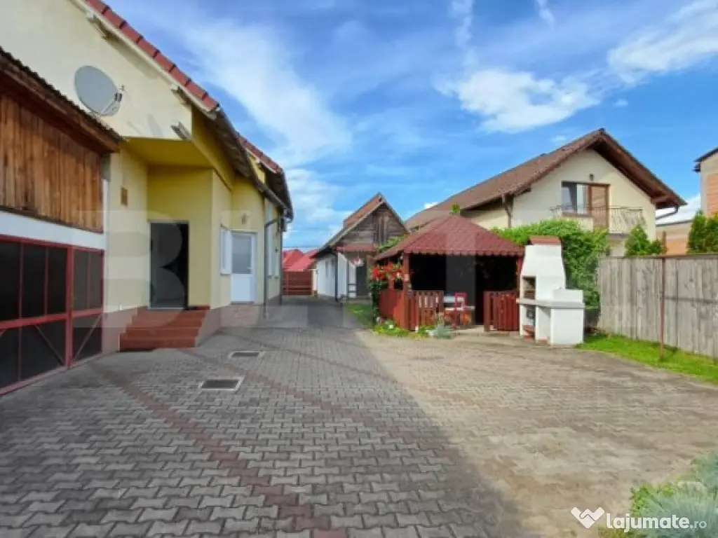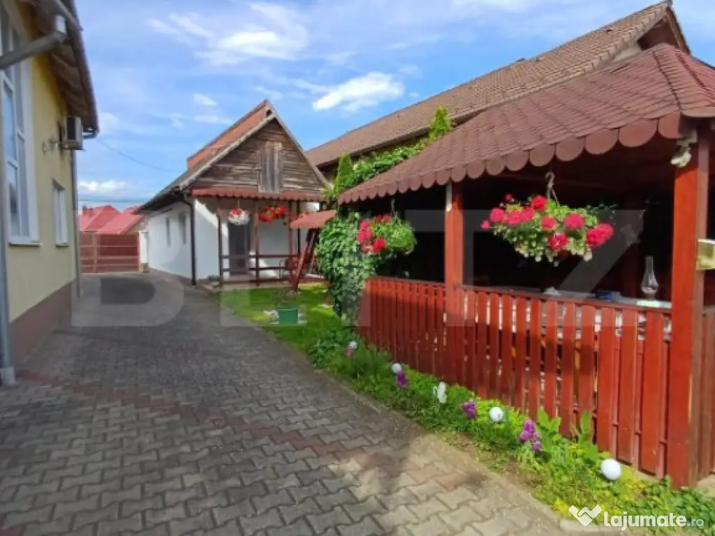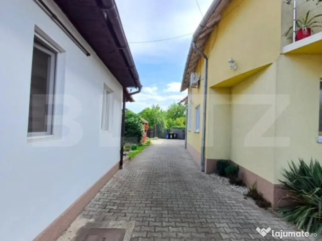 Blitz vă propune spre vânzare o proprietate deosebită, compusă din două case, amplasate pe un teren de 1324 mp, situate într-o zonă intens circulată, cu potențial remarcabil pentru investiții. Casa 1: 227.89 mp, dispusă pe parter + mansardă. Parter: - bucatarie cu camara, 1 baie cu geam, hol, living, 2 dormitoare, inca 1 baie si camera tehnica pentru centrala. Etaj: - hol, living cu iesire pe o terasa mica, 2 dormitoare din care unul cu balcon si dressing, baie si pod care poate fi transformat in alta camera sau bucatarie. Etajul este dotat cu aer conditionat. Intrarea intre parter si etaj este separata, oferind posibilitatea de a functiona ca 2 apartamente separate. Casa secundara are o suprafata de 40 mp si este compusa din bucatarie open space, dormitor, baie si o mica terasa la intrare. Fiecare proprietate are contorizare separata. Curtea este pavata cu dale, acces auto si 2 garaje. In curte se afla si un foisor cu zona de barbeque si o bucatarie de vara complet utilata. Gradina se intinde pe o suprafata de 737 mp si cuprinde o zona de legume si livada cu pomi fructiferi. Aceasta proprietate este ideală pentru închiriere în regim hotelier sau pe platforme precum Booking și Airbnb. Puncte forte: Zonă intens circulată, cu acces facil la transport și utilități; Posibilități multiple de configurare și utilizare; Curte generoasă, spațiu pentru parcare și intimitate. Dacă sunteți în căutarea unei proprietăți multifuncționale, cu potențial mare de profit, această ofertă este alegerea perfectă! Contactați-ne pentru mai multe detalii sau pentru a programa o vizionare Cod ofertă / ID BLITZ: P146466 Id intern: P146466 Număr niveluri imobil: 1 Număr Băi: 3 Curent Apă Canalizare Gaz Climă