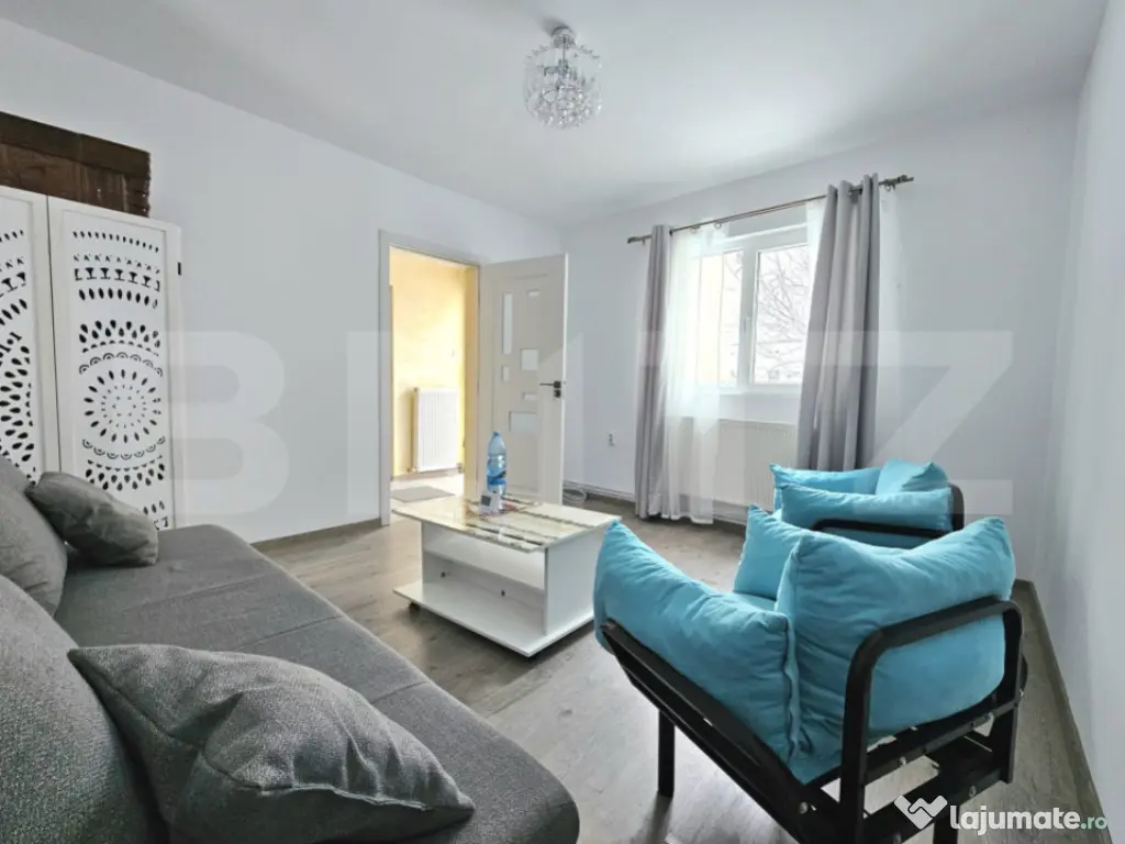 Blitz va prezinta spre vanzare o casa tip apartament, la curte individuala, un camin primitor care imbina linistea unei zone de case cu accesul rapid catre oras. Proprietatea a fost recent renovata si dispune de centrala proprie cu incalzire pe calorifere, oferind confort pe tot parcursul anului. Cu o suprafata utila de 60 mp, casa este compartimentata armonios in 2 camere luminoase, bucatarie, baie moderna cu dus walk-in si debara pentru depozitare, gandita pentru un stil de viata practic. Punctul forte al acestei proprietati este curtea individuala generoasa de aproximativ 200 mp, un spatiu ideal pentru momente de relaxare, mese in aer liber sau timp petrecut cu familia si prietenii, completata de o terasa si un garaj de 20 mp. Situata intr-o zona linistita, formata exclusiv din case, aceasta locuinta ofera intimitate si siguranta, fiind alegerea perfecta pentru cei care isi doresc un refugiu urban. In acelasi timp, centrul orasului se afla la doar 10 minute cu masina, pastrand toate facilitatile la indemana. O casa care poate deveni cu usurinta „acasa”, unde fiecare zi incepe si se incheie in liniste. Va asteptam la vizionare. Cod ofertă / ID BLITZ: P161492 Id intern: P161492 Număr Băi: 1 Nr. locuri parcare: 2 Curent Apă Canalizare Gaz