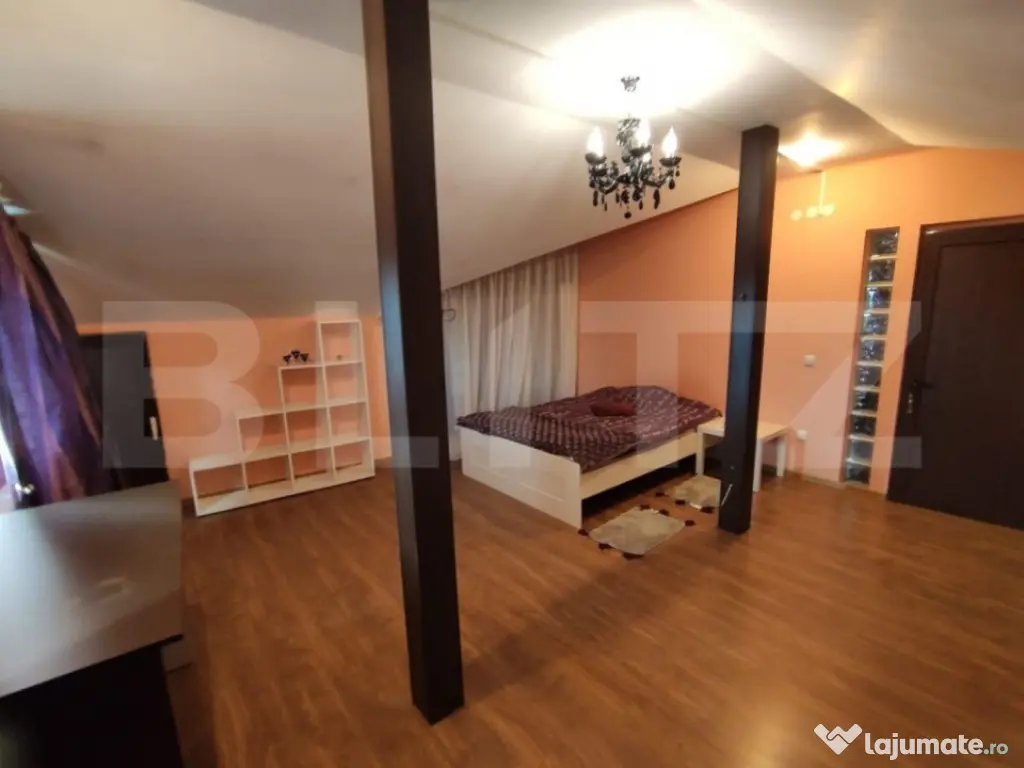 Blit ofera spre vanzare o casă individuală deosebită, situată într-o locație centrală și totuși liniștită. Această proprietate impresionantă se distinge prin construcția sa nouă, curtea spațioasă și îngrijită, plină de gazon și flori, oferind o atmosferă deosebită de relaxare. Caracteristici principale: Număr de camere: 9 Număr de băi: 4 Terase amenajate la parter și etaj Construcție nouă, cu finisaje de înaltă calitate Curte spațioasă și frumos amenajată Această casă individuală a fost recent construită și beneficiază de finisaje de înaltă calitate, oferind un spațiu modern și confortabil pentru locuire. Cu 9 camere spațioase, există suficient spațiu pentru a satisface nevoile unei familii numeroase sau pentru a crea birouri separate pentru cei care lucrează de acasă. Cele 4 băi moderne sunt amplasate strategic în diferite zone ale casei, oferind confort și intimitate. Fiecare cameră este amenajată cu atenție și oferă un mediu plăcut și relaxant. Atuul major al acestei proprietăți este curtea sa generoasă și frumos amenajată. Fiind ingrijită și plină de natura, curtea oferă un spațiu perfect pentru relaxare și petrecerea timpului în aer liber. Terasele de la parter și etaj oferă o priveliste relaxanta și sunt locuri ideale pentru a savura o ceașcă de cafea sau pentru a petrece timpul cu prietenii și familia. Localizată într-o poziție centrală, proprietatea beneficiază de acces ușor la principalele zone comerciale, de agrement și de transport. Cu toate acestea, datorită amplasării sale, veți putea să vă bucurați de o atmosferă calmă și relaxantă în timp ce sunteți acasă. Cod ofertă / ID BLITZ: P13933 Id intern: P13933 Număr niveluri imobil: 1 Număr Băi: 4 Nr. locuri parcare: 1