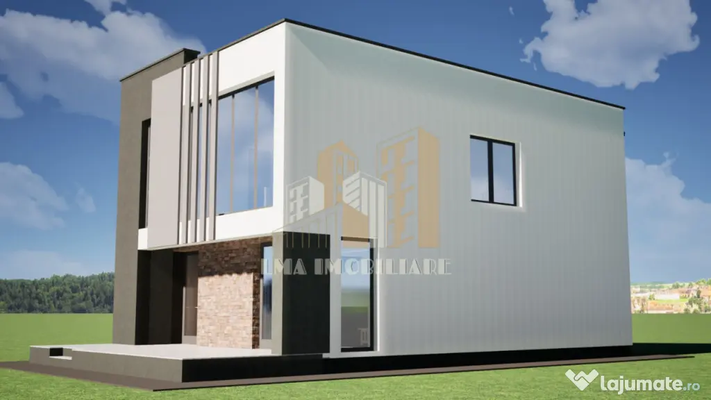 LMA Imobiliare va propune proiect casa P+E cu predare in 2026 in comuna Sanpetru ,Brasov cu un desing modern pe o structura din beton cu caramida,amplasata pe un teren de 650mp cu o suprafata libera(curte)565mp,construita 170mp,utili 129mp, cu acces din Calea Harmanului .