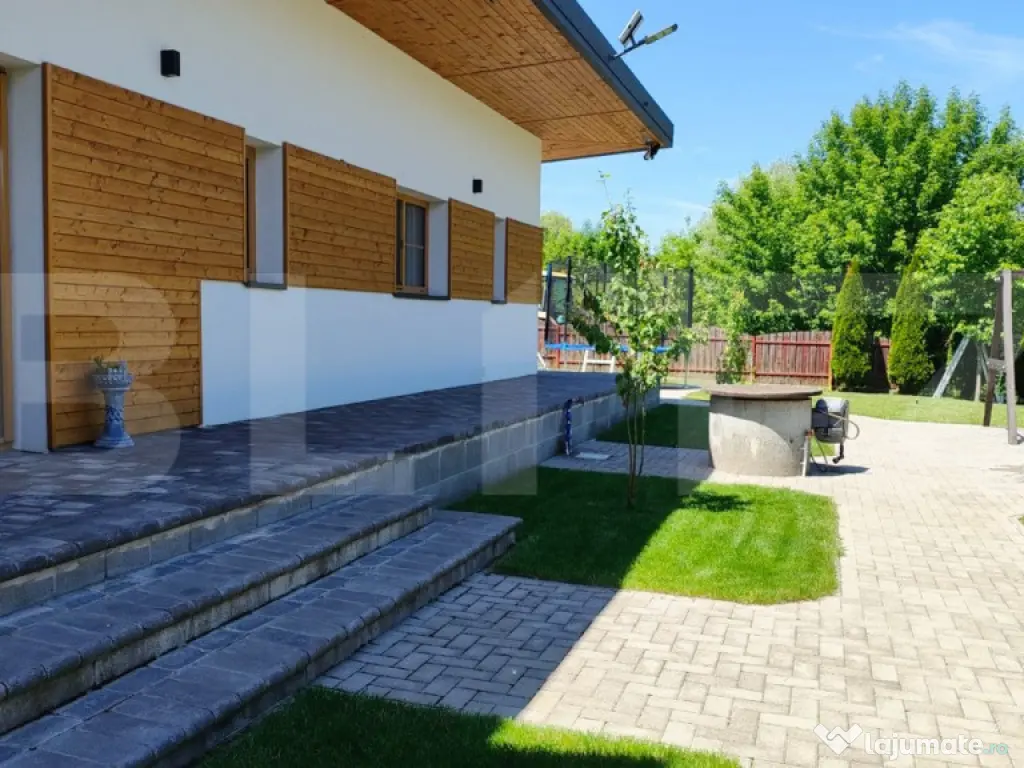 De vanzare casa cu 4 camere, mobilata si utilata. Aceasta se afla situata intr-o zona linistita, cu acces facil la E 60, finalizata in anul 2020, are suprafata construita la sol de 130 mp, dispusa pe un singur nivel si este compartimentata astfel: living, bucatarie, 3 dormitoare, 2 bai si un hol. Este construita din BCA YTONG de 40 cm, izolat cu polistiren de 10 cm, geamuri termopan tripan Salamander Blue Evolution 92, sticla 52 mm. Imobilul beneficiaza de alarma, camere de supraveghere video la exterior, aer conditionat, videointerfon, anexa pt depozitare, foisor, gratar, current trifazic, incalzire in pardoseala, internet prin fibra optica de la RDS, apa din fantana automatizat cu pompe, sistem de filtrare si lampa UV. Pentru mai multe detalii nu ezitati sa ne contactati. Cod ofertă / ID BLITZ: P140112 Id intern: P140112 Număr Băi: 2 Nr. locuri parcare: 4 Curent Gaz