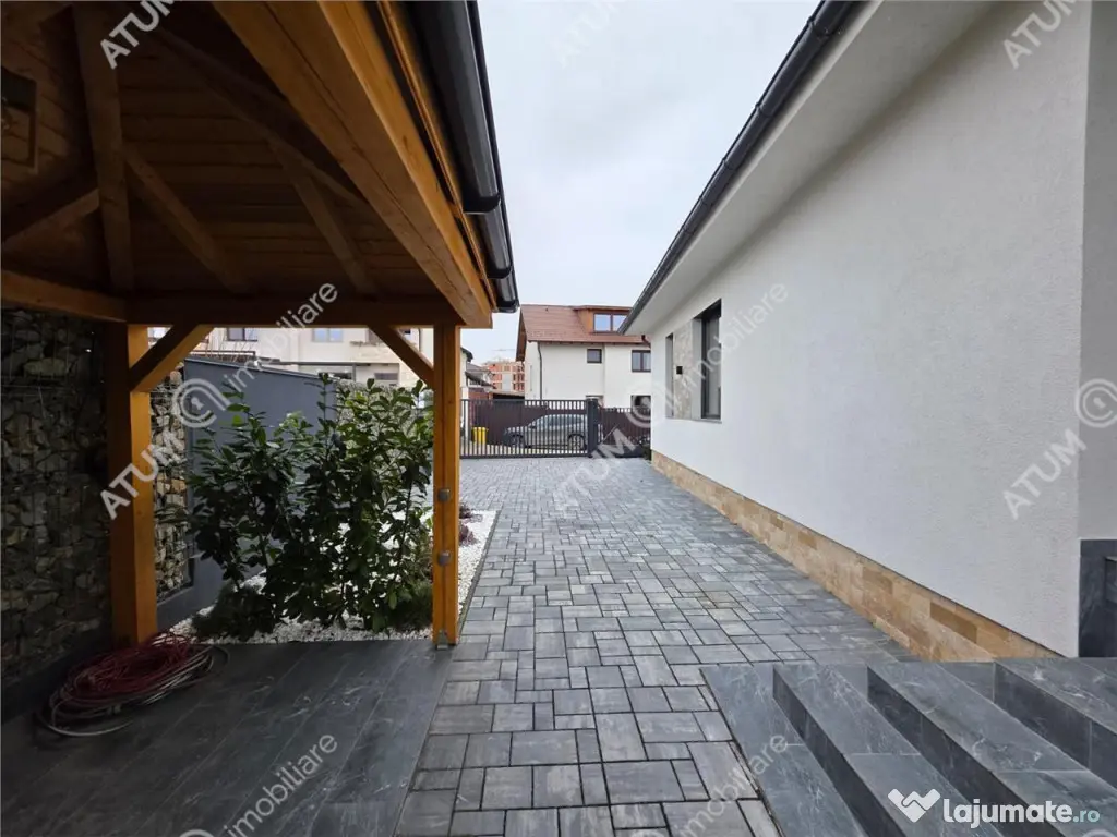 Atum Imobiliare va propune spre vanzare o casa individuala cu 4 camere decomandate si curte proprie, in suprafata totala de 257 mp, pozitionata pe un teren de 490 mp in comuna Selimbar din judetul Sibiu. Amprenta la sol a imobilului este de 160 mp, cu o deschidere stradala de 20 m, facand posibil accesul auto, iar terenul liber masoara 330 mp, acesta fiind amenajat cu cale de acces auto, cai de acces pietonale pavate cu dale din beton, zona verde in spatele casei amenajata cu gazon, flori decorative, arbusti decorativi si un foisor dotat cu gratar. Locuinta este distribuita pe Demisol Parter si insumeaza 200 mp utili, aceasta fiind compusa din: parter unde gasim living de 27 mp, bucatarie aproximativ 12 mp, 3 dormitoare matrimoniale de aproximativ 15 mp, dintre care unul are dressing propriu de 2.4 mp, hol de 17 mp iar la demisol un garaj de 50 mp dotat cu usa culisanta electrica, camera tehnica de 14 mp si pivnita de 14 mp. Separat de suprafata utila mai detine o terasa de 13 mp. Casa a fost construita in anul 2025, iar din punct de vedere tehnic aceasta a fost edificata pe structura din beton si zidarie din BCA de 30 cm grosime peste care a fost aplicat termosistemul exterior din polistiren expandat de 10 cm cu densitatea EPS 80 si decorativa siliconata. Planseul este realizat din beton. Casa (spatiul de locuit) se preda la stadiul de alb, iar demisolul la cheie. Valoarea de achizite este de 425.000 euro negociabil, aceasta putand fi achizitionata si prin accesarea unui credit bancar. ID intern: 3254. Număr Băi: 2 Posibilitate parcare: Da Nr. locuri parcare: 4 Curent Apă Canalizare Gaz Demisol