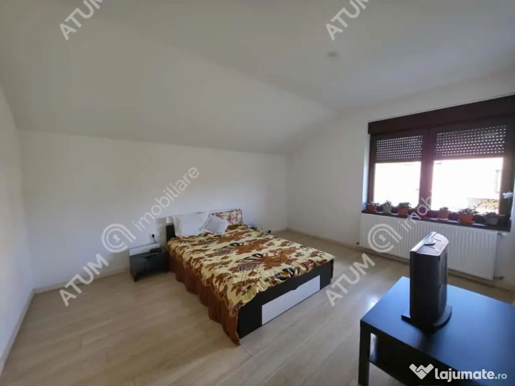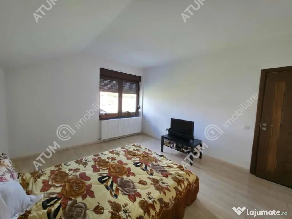 De vanzare casa/vila individuala intabulata, cu o vedere spectaculoasa spre Muntii Fagaras si panorama orasului Sibiu, situata in exclusivistul cartier Bavaria ndash; un ansamblu rezidential dedicat doar caselor, la doar 5 km de centrul orasului. Proprietatea este disponibila imediat si ofera un stil de viata premium, combinand confortul modern cu natura inconjuratoare. Constructia solida din caramida de 44 cm asigura eficienta energetica superioara, izolare termica si fonica excelenta, precum si ventilatie optima. Toate utilitatile sunt conectate: apa, gaz, curent, canalizare, cablu TV, internet prin fibra optica si telefon. Cartierul beneficiaza de intrare privata cu bariera, paza non-stop, drum privat asfaltat si iluminat stradal, plus posibilitatea de extindere a curtii adiacente. Compartimentare: Parter: Hol spatios de intrare; casa scarii cu debara sub scara; baie completa cu geam; living open-space cu zona de dining; camera birou versatila; bucatarie inchisa, complet mobilata si utilata (mobila la comanda, cu electrocasnice incluse); terasa generoasa cu vedere panoramica spre muntii Fagaras ndash; perfecta pentru momente de relaxare in aer liber. Etaj: Hol de acces; 3 dormitoare generoase (doua cu ferestre mari spre munti, ideale pentru odihna); baie principala complet echipata cu cada si dus; pod mansardat de 30 msup2; pentru depozitare sau amenajare suplimentara. La exterior, casa este inconjurata de trotuare pavate, cu o zona dedicata pentru parcare dubla. Geamurile termopan Rehau cu rulouri exterioare electrice din aluminiu asigura confort termic pe tot anul, iar acoperisul cu tigla Bramac completeaza aspectul elegant. Aceasta proprietate este gata de mutat, partial mobilata, si reprezinta o oportunitate rara pentru o familie care doreste spatiu, securitate si frumusete naturala la doi pasi de oras. Facilitati si extra Interior: Ferestre PVC termopan Rehau; rulouri electrice aluminiu; usa de intrare metalica securizata; izolatii termice exterioare si interioare; podele cu parchet laminat; usi interioare din lemn; pereti finisati cu vopsea lavabila si faianta in zone umede; bucatarie utilata (chiuveta, plita, hota); mobilat partial (dormitoare si living); stare interioara buna, gata de personalizare. Exterior: Terasa pavata; curte generoasa de 172 msup2; cu potential de extindere; zona de parcare pavata pentru 2 masini; gradina amenajabila. Utilitati si securitate: Apa, canalizare, curent trifazic, gaz metan, CATV, telefon; internet fibra optica si wireless; paza 24/24 in cartier; interfon; sistem de incalzire eficient cu centrala in condensare. Alte avantaje: Vedere unica la muntii Fagaras; acces la servicii de administrare si paza; zona rezidentiala exclusiva fara blocuri; energie clasa A pentru costuri reduse la utilitati. Valoarea de achizitie este de 212.000 euro negociabil, aceasta poate fi achizitionata si prin accesarea unui credit bancar. ID intern: 3004. Număr Băi: 2 Posibilitate parcare: Da Nr. locuri parcare: 2 Curent Apă Canalizare Gaz