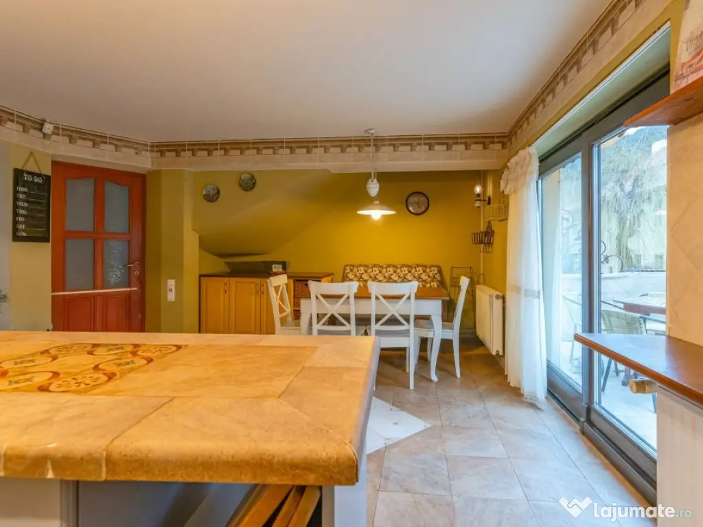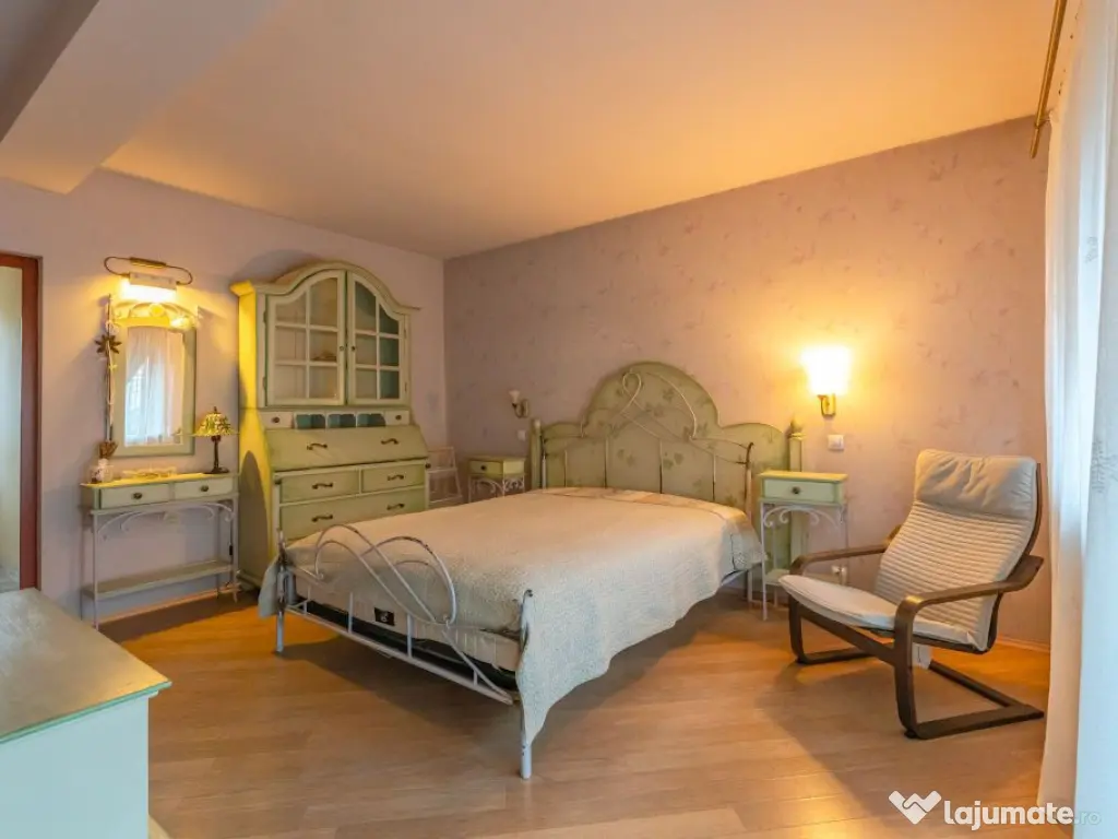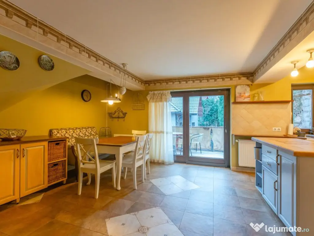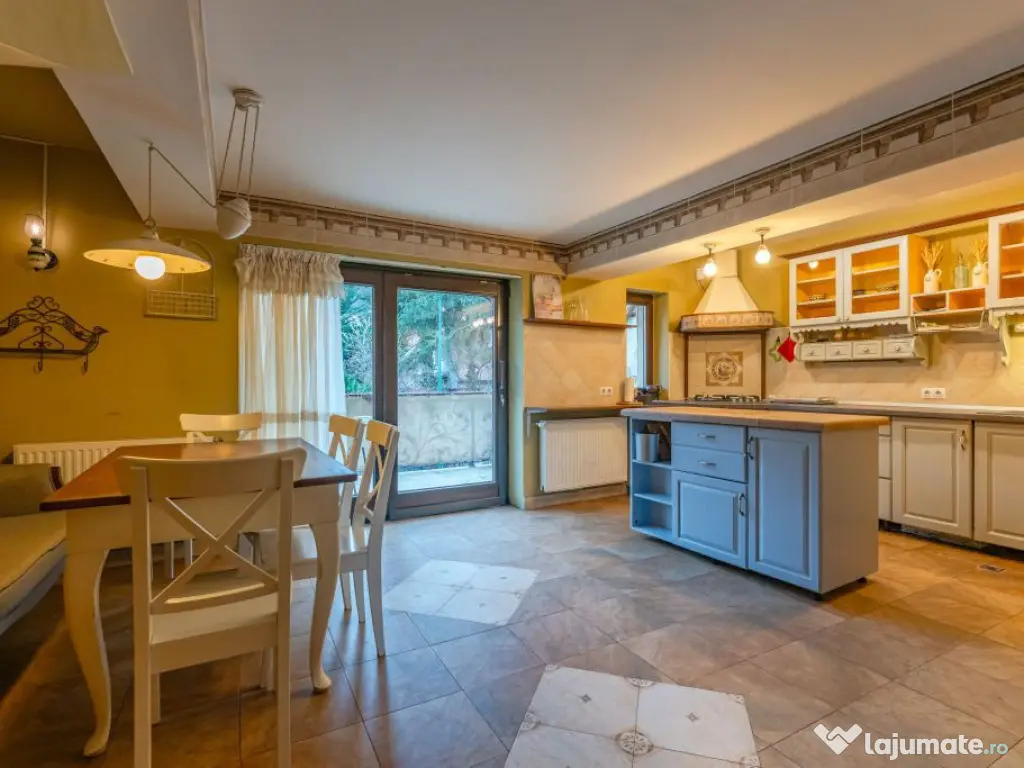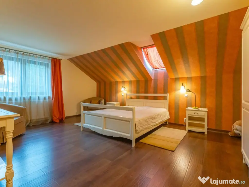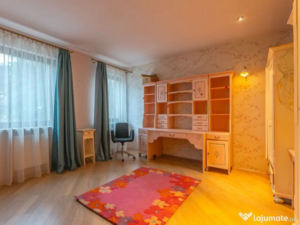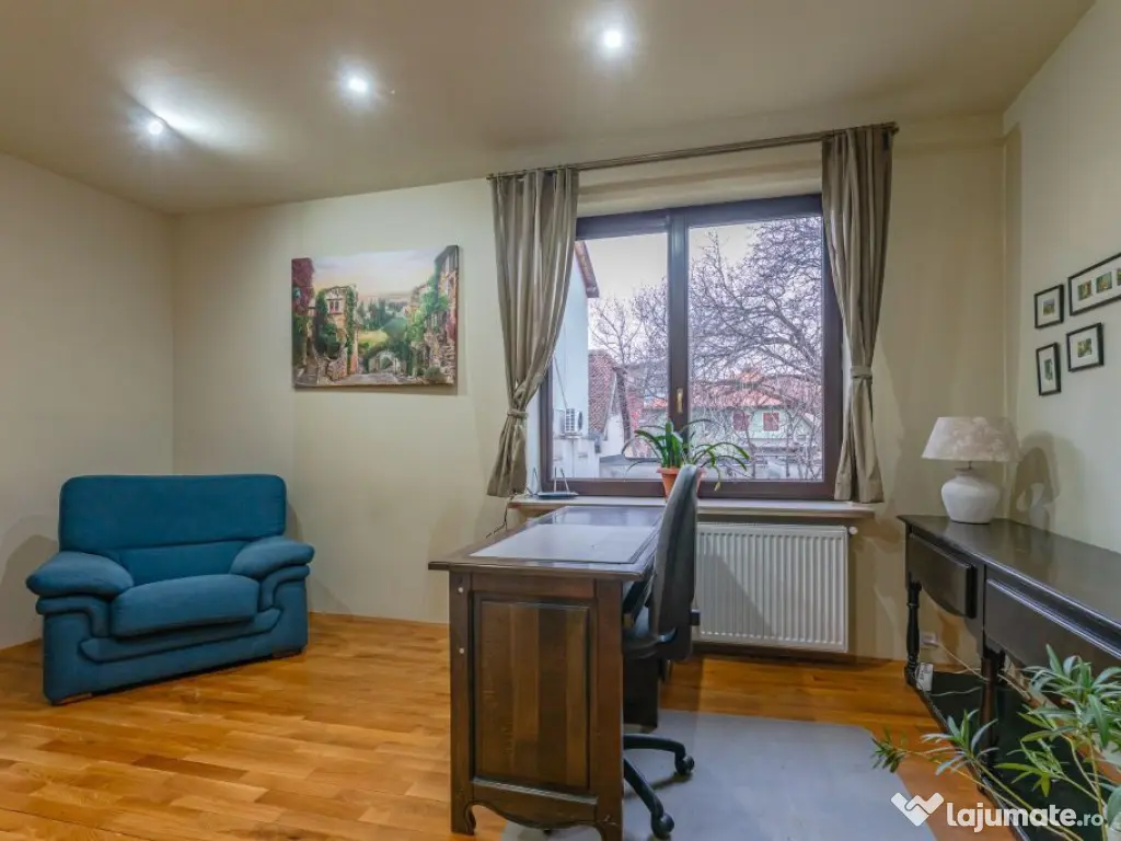 Vă propunem spre închiriere o proprietate solidă și versatilă, situată strategic în imediata apropiere a centrului comercial AFI Mall. Cu un regim de înălțime S+P+2E+M, casa oferă un spațiu generos și bine organizat, fiind o soluție ideală pentru cei care caută fie o locuință spațioasă în inima orașului, fie un sediu de firmă reprezentativ, cu acces facil către principalele artere comerciale și financiare ale Brașovului. DETALII TEHNICE ȘI CONFIGURAȚIE Imobilul dispune de o suprafață utilă de 330 mp, fiind gândit să asigure funcționalitate maximă pentru diverse activități. Construcția este realizată pe structură de cărămidă, cu izolație exterioară de 10 cm și ferestre cu geam termopan cu tâmplărie din lemn, oferind un confort termic optim în orice sezon. Configurația interioară include: - 7 camere (un living primitor, 5 dormitoare și un birou ). - 5 băi complet utilate. - Spălătorie și multiple spații de depozitare. Curte proprie, oferind intimitate și spațiu exterior privat. DOTĂRI ȘI FINISAJE Proprietatea beneficiază de curte proprie și se închiriază parțial mobilată și utilată conform fotografiilor de prezentare. Printre dotările și finisajele imobilului se numără: - Finisaje: Parchet, gresie și faianță în stare foarte bună. - Siguranță: Sistem de supraveghere video și interfon. - Utilități complete: Gaz, apă, canalizare, fibră optică și curent (inclusiv trifazic). - Încălzire: Centrală proprie pe gaz și sistem cu calorifere. TEREN ȘI EXTERIOR Casa este amplasată pe un teren de 280 mp, beneficiind de un front stradal generos de 20 de metri. Această deschidere asigură o vizibilitate excelentă pentru activități profesionale și un acces auto și pietonal facil. LOCALIZARE Poziționarea în zona AFI Mall reprezintă un avantaj competitiv, oferind proximitate imediată față de instituții bancare, zone comerciale, restaurante și mijloace de transport în comun, facilitând conectivitatea cu toate punctele de interes ale orașului. CONDIȚII DE ÎNCHIRIERE Proprietatea aparține unei persoane fizice și este potrivită atât pentru destinație rezidențială, cât și pentru spațiu de birouri. Garanție: Se solicită constituirea unei garanții la semnarea contractului. Cheltuieli: Utilitățile și cheltuielile locative se achită separat de valoarea chiriei. Comision: Comisionul agenției imobiliare este de 50% din valoarea chiriei pentru o lună. Număr niveluri imobil: mai mult de 12 Număr Băi: mai mult de 3 Posibilitate parcare: Nu Curent Apă Canalizare Gaz