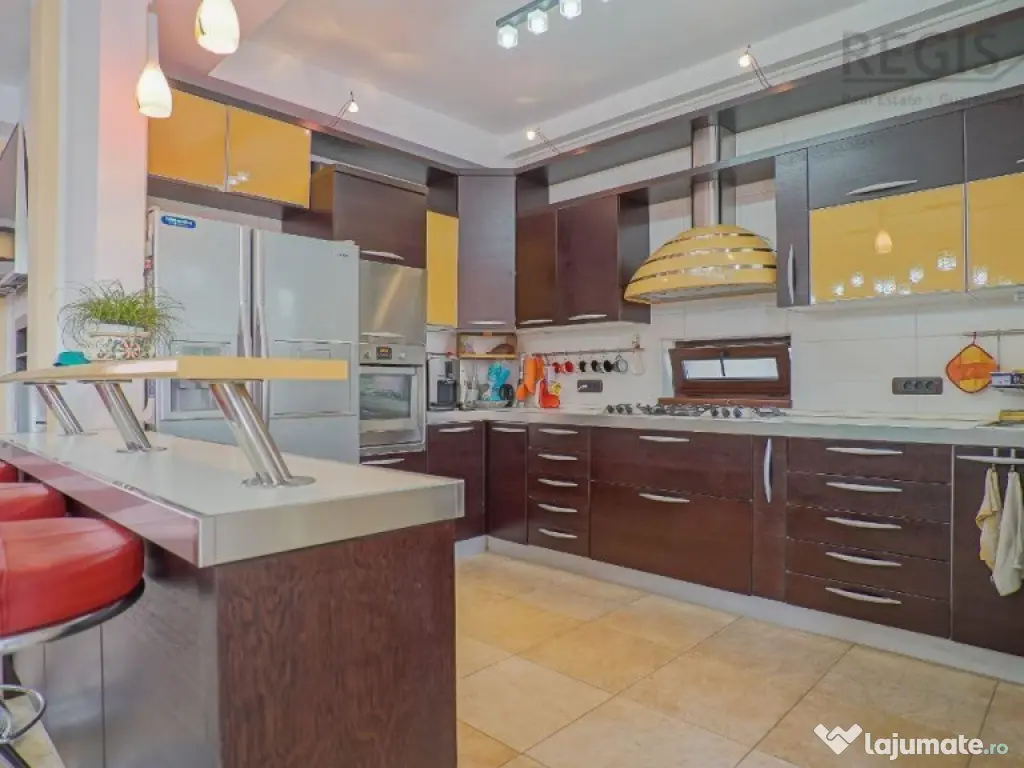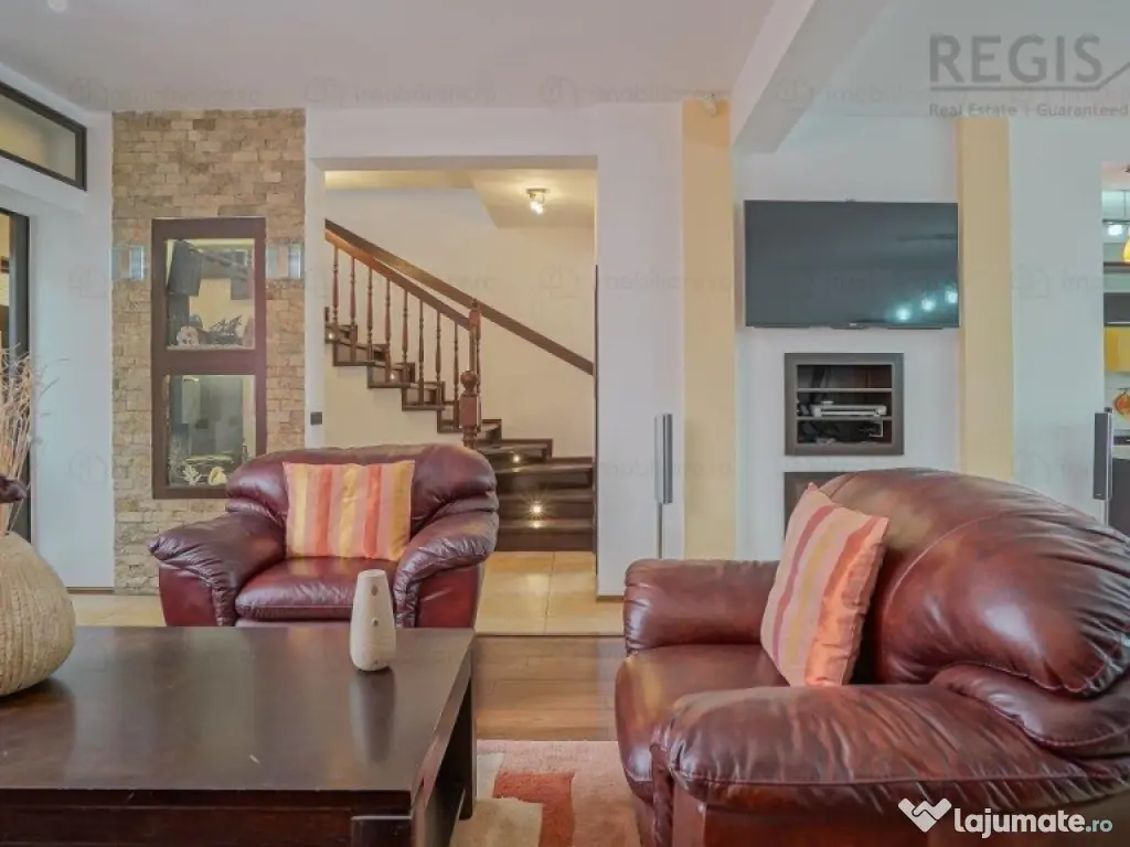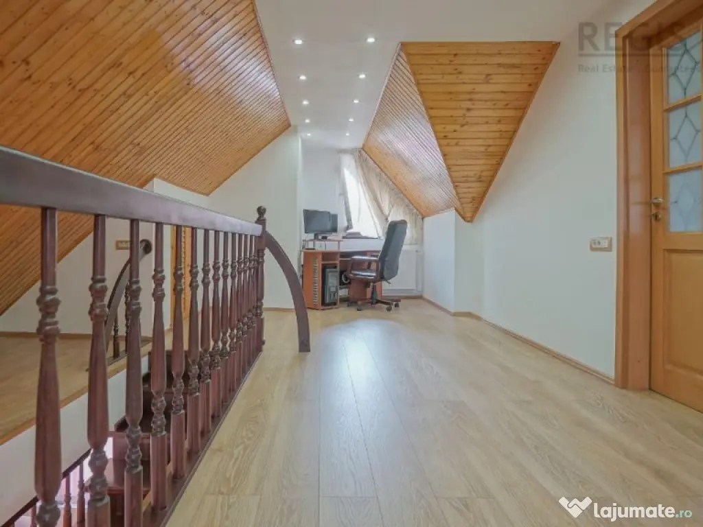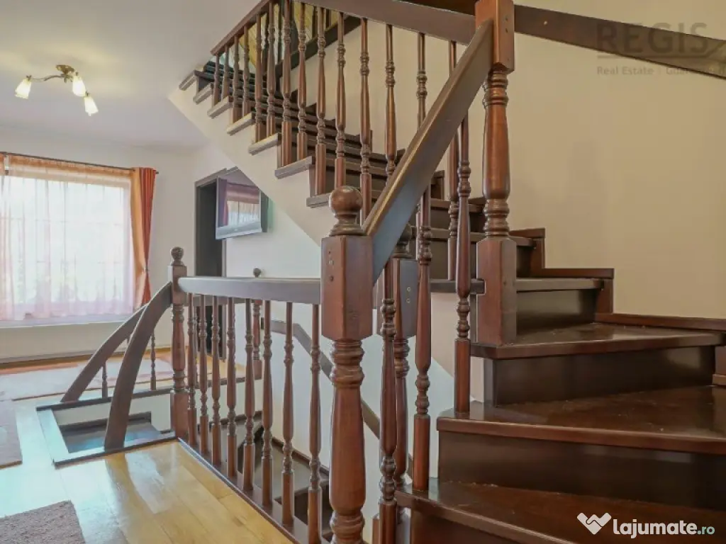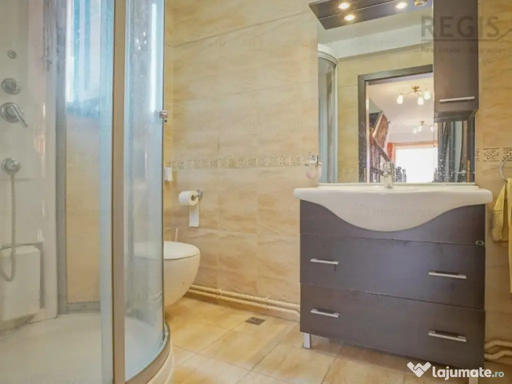 REGIS Imobiliare are placerea de a va prezenta o oportunitate de achizitie reprezentata printr-o casa individuala in zona Florilor. Proprietatea este pozitionata in imediata apropiere a sensului giratoriu din zona Gemenii, dar totusi fiind ferita de zgomotul si agitatia urbana. Vila este amplasata pe un teren generos de 425mp, beneficiind de intimitate. Imobilul este dispus pe S P E M, fiind compartimentat astfel: Subsolul este format din 5 incaperi cu destinatii diferite: camera tehnica, atelier, spalatorie cu uscatorie, spatiu de depozitare, camara cu o suprafata totala de 150 mp Parterul este compus din: zona de living cu suprafata vitrata mare, fapt ce ofera accesul luminii naturale, fiind dotat cu semineu, bucataria complet utilata si mobilata cu mobila import din Italia, fiind open-space cu locul de luat masa cu acces spre terasa, hol, baie si garaj pentru doua masini. Etajul detine: zona de relaxare, care poate fi amenajata dupa placul viitorilor proprietari, hol, 3 dormitoare fiecare cu acces spre balcon/terasa, dintre care unul matrimonial dotat cu baie proprie cu cada plus o alta baie cu cabina de dus. Mansarda este amenajata ca zona de recreere a proprietatii, unde regasim o masa de biliard, zona pentru Darts si jocuri de societate, cu o suprafata de 110 mp. Proprietatea are toate utilitatile si este dotata cu centrala termica pe gaz centrala termica cu lemne - incalzire cu calorifere, partial incalzire in pardoseala in zona de living - tamplarie PVC, cu geam termopan. Vila a fost construita de actualul prorpietar, fapt ce demonstraza ca a fost acordata o atentie deosebita pentru detalii, materialele folosite si finisaje. Casa dispune de un garaj pentru 2 masini dotat cu 2 usi electrice oferind acces din strada si spre curte, canal pentru reparatii auto. Casa se preda complet mobilata si utilata conform pozelor din prezentare, majoritatea pieselor de mobilier fiind din lemn masiv de import. Proprietatea este situata intr-o zona de case, la mica distanta de mijloace de transport in comun. Accesul auto, pana in centru se poate face in cca. 10 minute. Pretul este negociabil. Pentru detalii suplimentare si programare pentru vizionare, nu evitati sa ne contactati. Comisionul companiei este de 2% plus TVA. Va invitam sa profitati de aceasta oportunitate de a crea un camin spatios sau o afacere de succes aproape de inima orasului. Număr Băi: 2 Posibilitate parcare: Da Nr. locuri parcare: 2 Curent Apă Canalizare Gaz Demisol