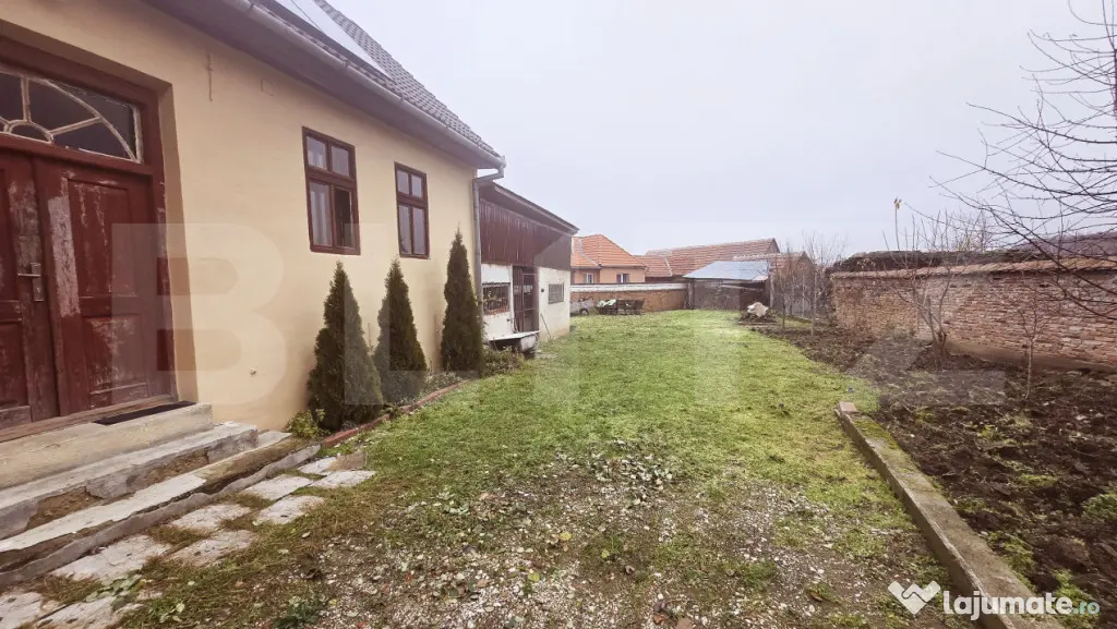 Proprietatea dispune de două camere, bucătărie, baie, pivniță boltită specifică stilului săsesc, precum și o anexă lipită, perfectă ca spațiu de depozitare sau atelier. Terenul de 500 mp oferă intimitate și posibilitatea de amenajare a unei grădini sau zone de recreere.