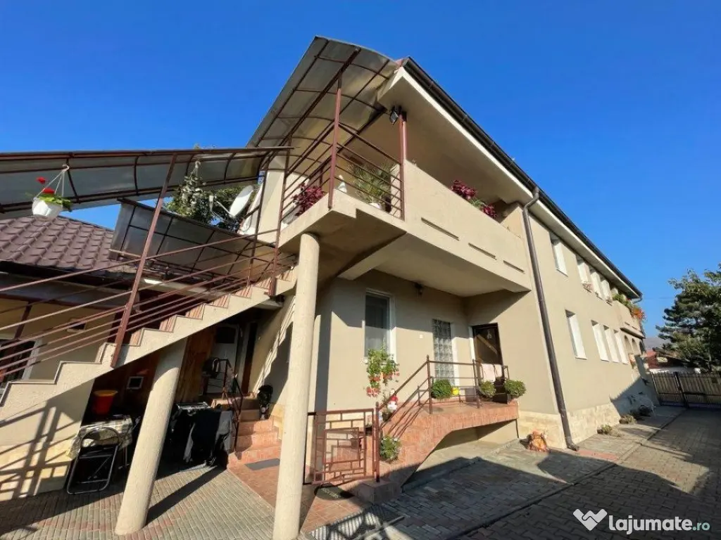 Blitz ofera spre vanzare casa individuala cu suprafata generoasa , spatiul util fiind de 400 mp , iar terenul aferent este de 997 mp. Cladirea a fost edificata in anul 2003 , fiind construita pe 3 niveluri. Demisol : camera tehnica , beci , zona centralei termice care este protherm avand boiler incorporat de 100 l si contructia este din beton. Parterul este construit din caramida , iar compartimentarea este urmatoarea : hol, bucatarie, doua dormitoare, doua bai, living si doua terase. La etaj casa dispune de : hol, trei dormitoare, o bucatarie, doua bai, dressing si doua terase, constructia fiind din BCA. Intrarile sunt separate. Exteriorul casei este izolat cu polistiren de 5 cm, acoperisul fiind din tigla BRAMAC, termopanele avand 5 camere - 4 anotimpuri. Aferent constructiei exista o anexa care dispune de hol, birou, bucatarie, camera si baie. Toata cladirea este integral finisata si se vinde complet mobilata si utilata. In curte sunt amenajate filigorie si zona de barbecue. Garajul este unul spatios fiind impartit in magazie, loc pentru 3 masini si detine pod. Accesul se face din drumul national E60 sau de pe un drum de servitute. Toate utilitatile disponibile: apa, gaz, curent , canalizare. Constructia este libera de sarcini si este predabila imediat! Foarte pretabila pentru activitati comerciale, sediu firma sau clinica , vadul fiind unul foarte bun. Cod ofertă / ID BLITZ: P3120 Id intern: P3120 Număr niveluri imobil: 1 Număr Băi: 4 Nr. locuri parcare: 5-10