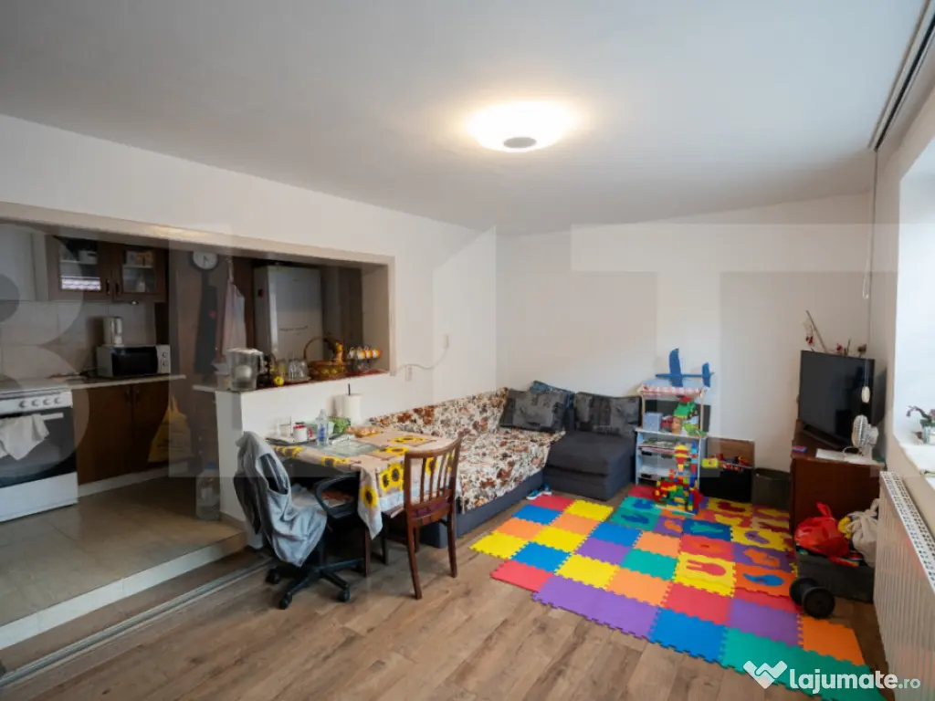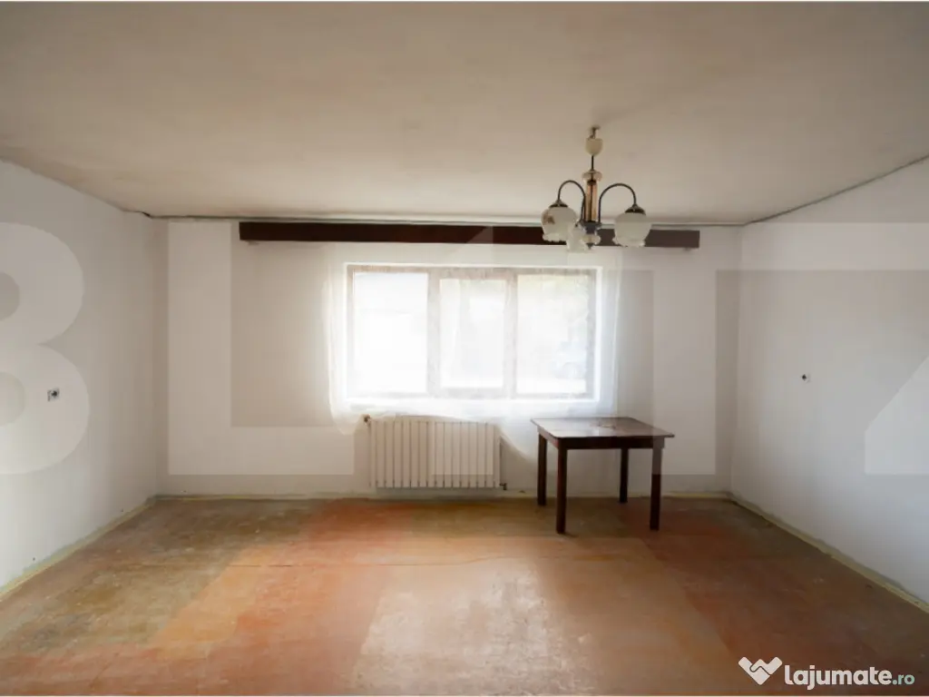 Blitz Imobiliare vă prezintă o proprietate cu un potențial deosebit, situată într-o zonă liniștită, dar centrală din Chișoda. Această casă individuală necesită renovare, însă reprezintă o oportunitate rară: cu o investiție relativ mică, poate fi transformată într-o reședință spectaculoasă sau o investiție inteligentă, adaptată viziunii dumneavoastră. Terenul generos de 740 mp, împreună cu structura existentă, oferă o bază solidă pentru un proiect de vis. Caracteristici și Potențial de Amenajare Corpul Principal de Clădire (Aprox. 100 mp construiți): Configurație Versatilă: Corpul principal dispune de 4 camere, ce pot fi reconfigurate cu ușurință. În prezent, două dintre acestea sunt ideale pentru a fi amenajate ca birouri (office) sau dormitoare, alături de un living spațios cu bucătărie open-space și o baie dotată cu vană. Structură Solită: Casa beneficiază de un beci util și o structură de rezistență solidă, cu pod cu structură de beton și țiglă, pregătit pentru mansardare. Potențial de Extindere/Apartamentare: Podul are acces separat din exterior, oferind posibilitatea de a amenaja un apartament independent sau de a extinde spațiul locativ, adăugând o valoare considerabilă proprietății. Anexă (Apartament Secundar): Proprietatea include o anexă funcțională, configurată ca un mini-apartament, compus din baie, bucătărie și 2 camere — ideal pentru oaspeți, închiriere sau locuința personalului auxiliar. Exterior și Facilități: Teren Impresionant: Beneficiați de un teren de 740 mp, care include o curte spațioasă, parcare la stradă și o grădină matură, cu pomi fructiferi și diverse dependințe. Această proprietate reprezintă o pârghie excelentă pentru cei care văd potențialul dincolo de aspectul actual și doresc să investească într-o locație de top din proximitatea Timisoarei. Spațiul amplu, terenul generos și opțiunile de mansardare/extindere o transformă într-o oportunitate rară pe piață. Nu ratați șansa de a transforma această casă în reședința dumneavoastră de vis sau într-un proiect imobiliar de succes! Contactați echipa Blitz Imobiliare astăzi pentru a programa o vizionare și pentru a discuta despre potențialul vast al acestei proprietăți. Cod ofertă / ID BLITZ: P157498 Id intern: P157498 Număr Băi: 2 Nr. locuri parcare: 1 Curent Apă Canalizare Gaz Climă