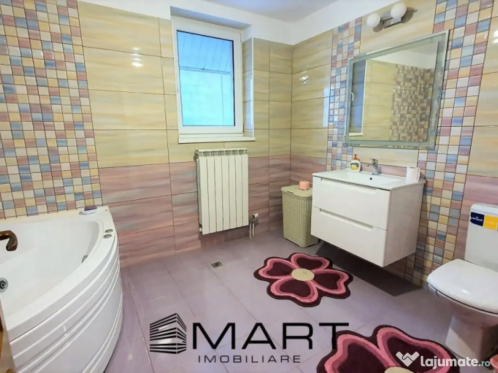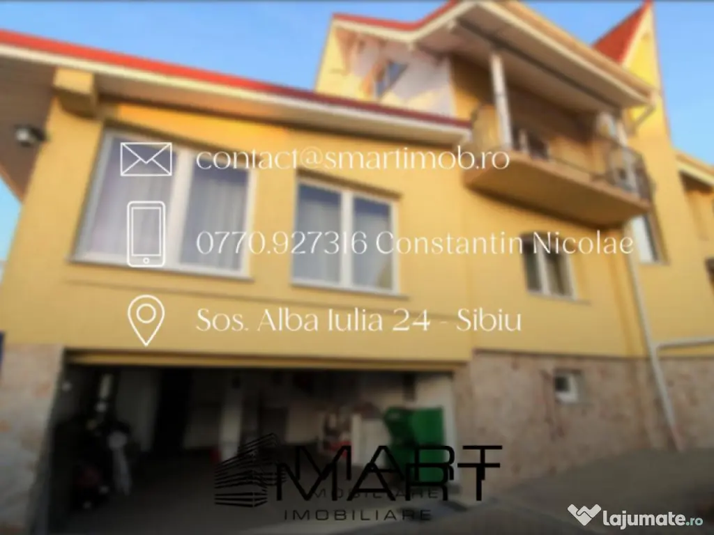 Smart Imobiliare inchiriaza casa individuala situata in cartierul Tilisca. Vila are suprafata utila de 360 mp si dispune de un teren de 800 mp amenajat cu zona verde, zona de relaxare si gratar. Imobilul ofera o priveliste minunata si relaxanta. Vila dispune subsol unde este garajul, o pivnita, o baie de serviciu si o bucatarie de vara. Parterul dispune de living spatios, bucatarie separata cu loc de luat masa, 2 bai, un dormitor si o camera de relaxare cu vedere in curtea din spate. Etajul este compus din living, bucatarie separata, dormitor matrimonial cu baie proprie, dormitor cu iesire pe balcon, baie. Mansarda nu este mobilata, exista o bucatarie neamenajata, 2 camere si o baie amenajata si utilata. Vila dispune de 2 centrale proprii, panou solar cu boiler, 2 intrari separate din curtea interioara, poarta automatizata pentru accesul auto, alarma Imobilul se inchiriaza mobilat si utilat, fiind mobilat modern. Curtea este frumos amenajata, dipune de zona de relaxare, spatiu de joaca, zona verde, pomi, flori si zona unde este amenajata pentru legume. Pentru detalii si vizionari, precizati ca ati vazut anuntul cu ID: P17874 Prețul de promovare este de 1.800€ /negociabil în funcție de condițiile stabilite împreună cu proprietarul. Pentru mai multe detalii despre această proprietate și pentru programarea unei vizionări, vă rugăm să contactați consultantul responsabil. Smart Imobiliare vă oferă consultanță completă pe tot parcursul tranzacției, de la prima vizită și până la predarea cheilor. Id intern: P17874 Număr niveluri imobil: 2 Număr Băi: 5 Comision cumpărător: 50% Curent Apă Canalizare Gaz