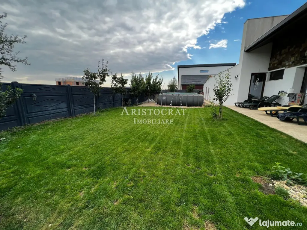 Oferim spre vanzare casa individuala de vanzare in Corbeanca, in apropiere de liziera padurii. Locuinta construita in 2012, distibuita pe parter, are o supr. utila de 330mp, supr. teren : 1200mp, amprenta sol: 330mp, desch. sosea 23m si este compartimentata astfel : vestibul intrare, bucatarie deschisa cu zona de dining, camara, baie, dressing, living cu iesire pe terasa acoperita, dormitor matrimonial cu baie proprie, hol, spatiu birou, 2 dormitoare, baie, subsol open space 50mp, terasa panoramica cu acces in spatiu de depozitare din pod. Dotari si utilitati : marmura, gresie, faianta, incalzire in pardoseala, aer conditionat, gaze, fosa septica, structura de caramida, spatii interioare pe structura metalica si doua straturi de rigips, acoperis tigla, centrala termica, panouri solare 3.5kw, sistem irigatie, gradina amenajata, pomi fructiferi, 2 puturi, statie dedurizare, sistem supraveghere video, garaj pentru 4 locuri de parcare, usa garaj electrica, strada asfaltata. Casa se vinde complet mobilata si utilata. Strada pe care se afla imobilul are acces facil la: padure, lac, scoala, gradinita, mijloace de transport in comun, supermarket, saloane de infrumusetare, sali de sport, zone comerciale. Număr niveluri imobil: 1 Număr Băi: 3 Posibilitate parcare: Da Nr. locuri parcare: 4 Subsol