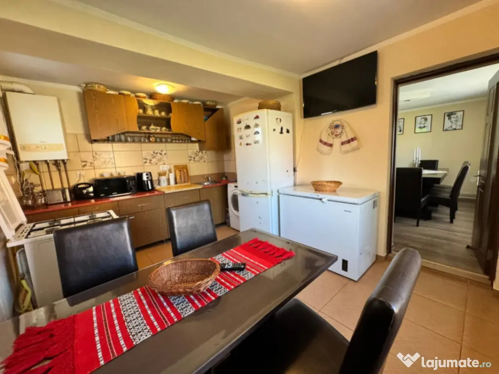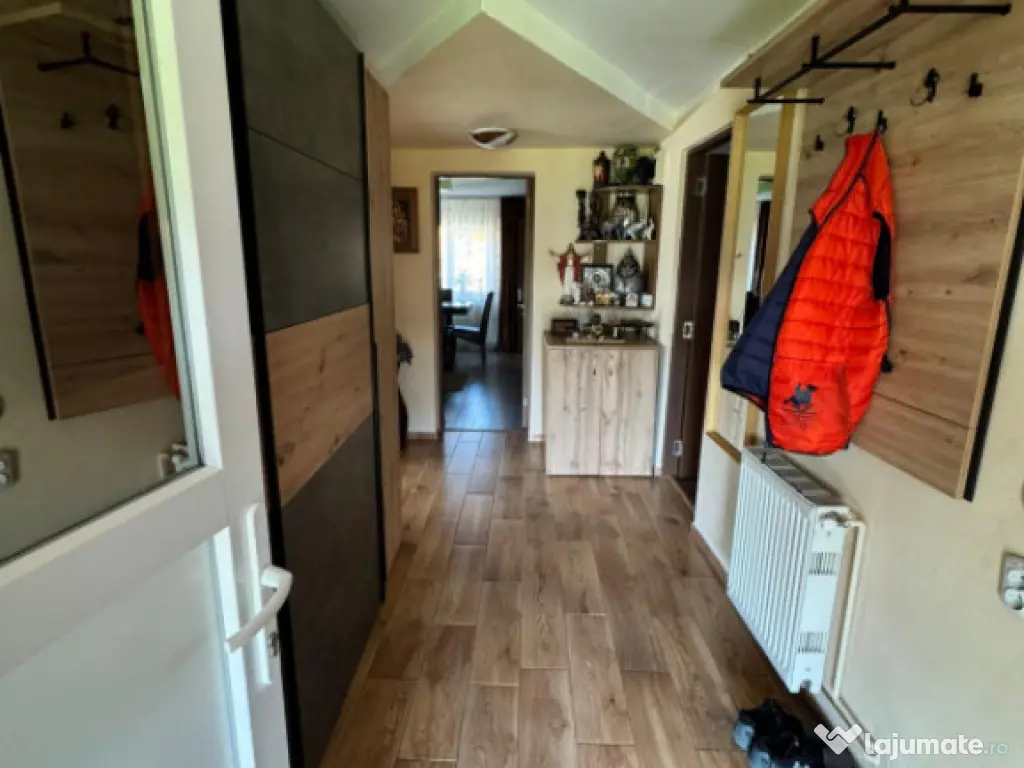 BLITZ vă propune spre vânzare o casă individuală situată într-o zonă aerisită și liniștită, cu acces direct la drumul principal, ideală pentru locuit sau investiție. Imobilul dispune de o suprafață utilă de 98 mp,plus o terasa de 30mp și este amplasat pe un teren generos de 11 ari, oferind spațiu suficient pentru relaxare, grădinărit sau amenajări suplimentare. Construcția este realizată din cărămidă și BCA, fiind izolată exterior cu vată bazaltică, ceea ce asigură un confort termic ridicat și eficiență energetică. Acoperișul este din tablă Bilka, iar accesul în proprietate se face prin poartă electrică. Compartimentarea este practică, iar locuința se vinde complet mobilată și utilată, exact ca în fotografii, fiind pregătită pentru mutare imediată. Dispune de: • living spațios cu zonă de dining • bucătărie complet utilată • dormitoare luminoase • baie • spații bine optimizate Încălzirea se realizează prin centrală termică proprie cu calorifere. Un avantaj major al proprietății este posibilitatea de mansardare, oferind oportunitatea extinderii suprafeței locuibile în funcție de nevoile viitorului proprietar. Curtea este amenajată cu gazon și pomi, oferind un cadru natural plăcut, ideal pentru relaxare. Cod ofertă / ID BLITZ: P169094 Id intern: P169094 Număr niveluri imobil: 1 Număr Băi: 1 Nr. locuri parcare: 4 Curent Apă Canalizare Gaz
