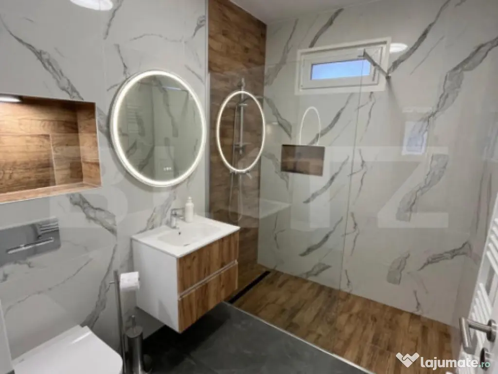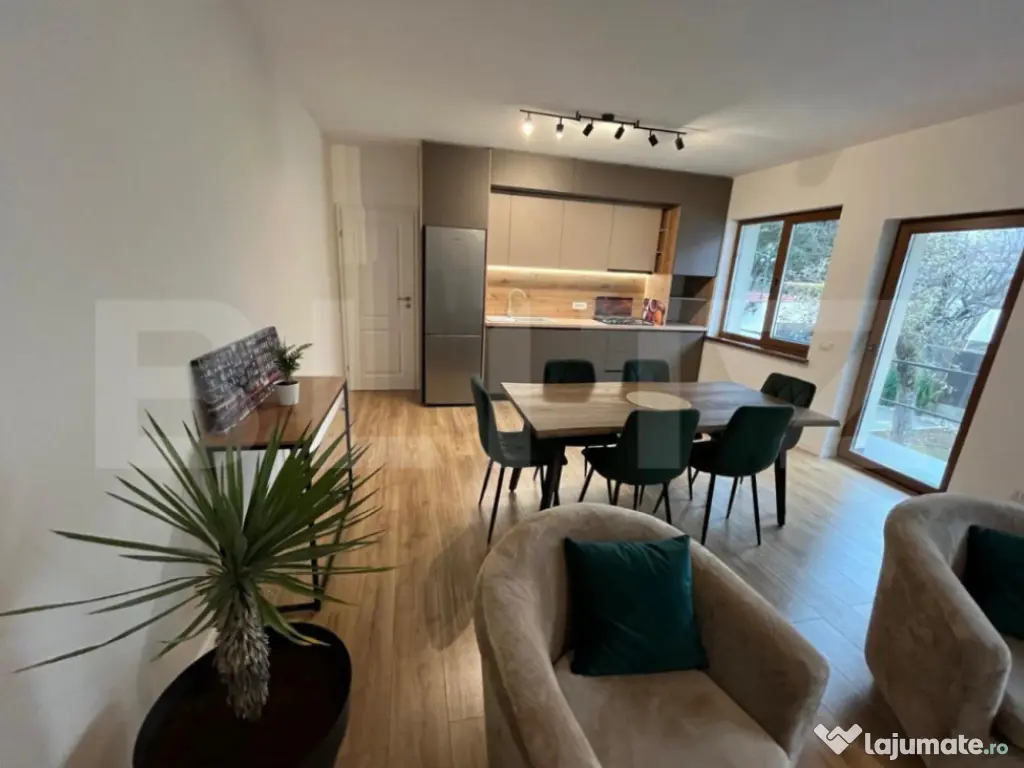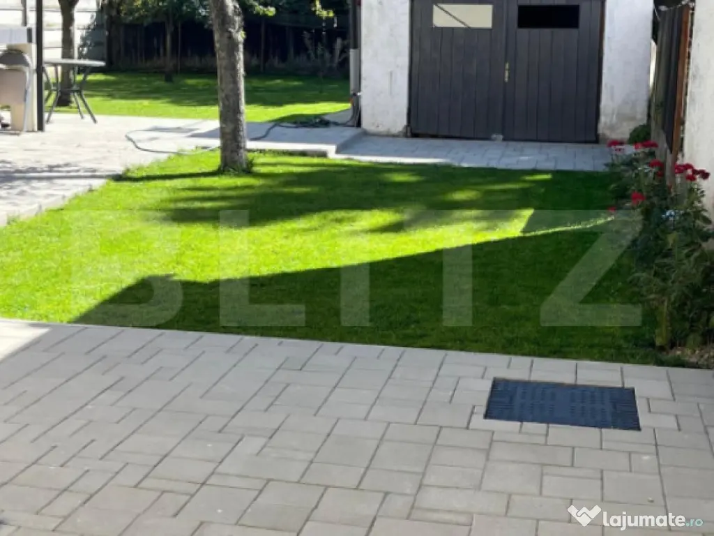 Blitz Imobiliare va propune spre inchiriere casa individuala cu gradina proprie intr-o zona centrala, la 10 minute de AFI Mall, compusa din: 2 dormitoare cu amplasament stradal (1 dormitor nemobilat), bucatarie si living open space mobilate si utilate complet, o baie amenajata modern, camera tehnica si terasa. Suprafata utila de 100mp si curte de 450 mp amenajata cu gazon si alei pavate. La demisolul casei functioneaza o firma si proprietatea este disponibila incepand cu 1 decembrie. Nu se accepta animale de companie. Va asteptam cu drag la vizionare! Cod ofertă / ID BLITZ: P157084 Id intern: P157084 Număr Băi: 1 Nr. locuri parcare: 1 Curent Apă Canalizare Gaz