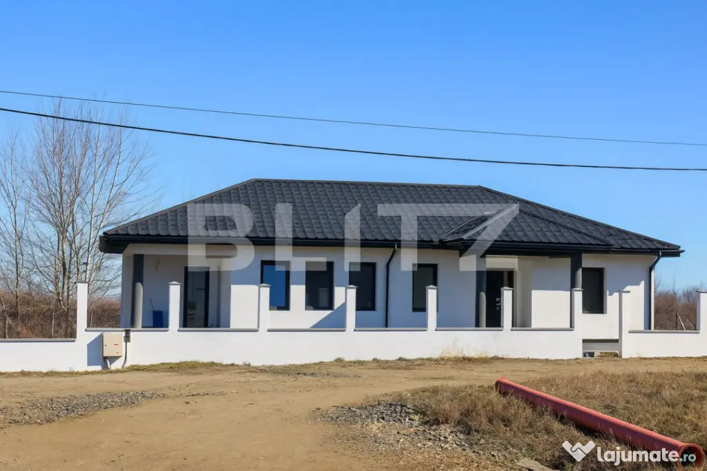 Blitz vă prezintă spre vânzare o casă finalizată și finisată, situată într-un cartier rezidențial de case noi, în apropiere de Baia Mare.